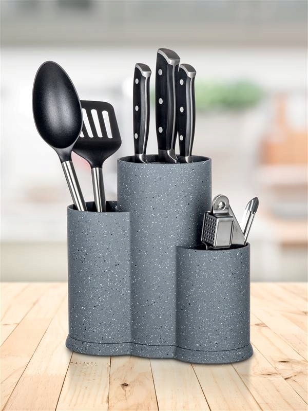 ПІДСТАВКА ДЛЯ НОЖІВ, КОНТЕЙНЕР 3-в-1 GRANITE GREY