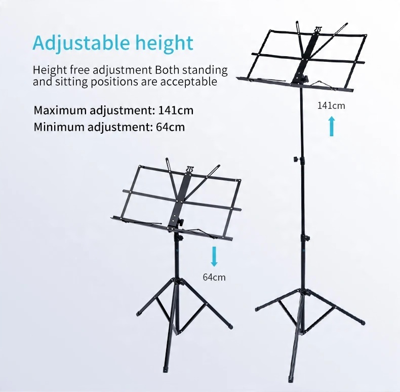 Пюпітр GSS03 має широкий діапазон регулювання висоти та нахилу, тому його можна використовувати як стоячи, так і сидячи. Його невелика вага і мінімальні розміри в складеному вигляді роблять його ідеальним супутником у подорожах. Незважаючи на це, він залишається міцним і стійким, а його вантажопідйомність становить до 2,5 кг. Протиковзкі покриття на підставці, металеві «вуса» для аркушів паперу та ергономічні ручки затягування.
