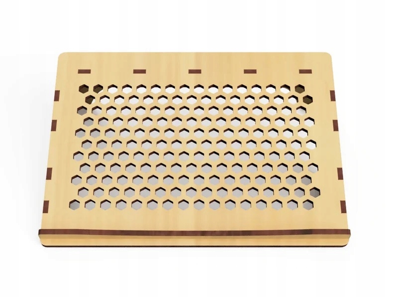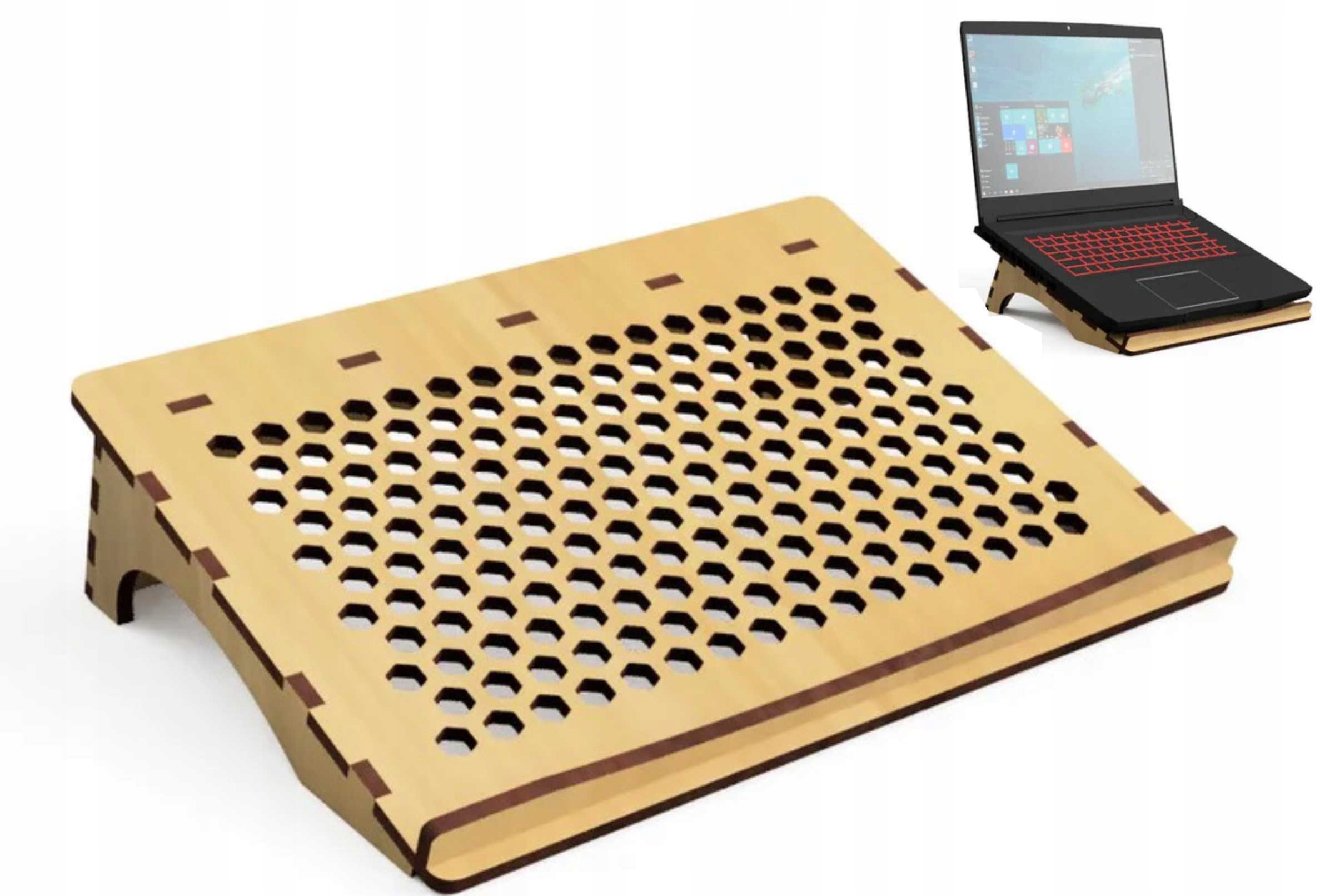 Ідеально підігнана дерев'яна підставка для ноутбука. Виготовлений з фанери 3 мм. Допомагає розсіювати тепло - перевірено в нашому офісі.