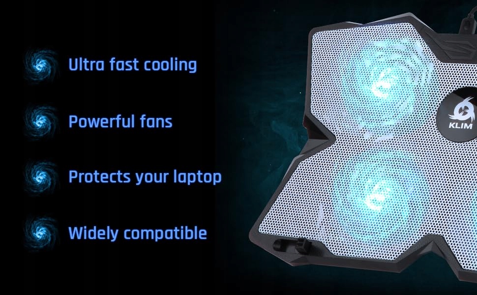 Ноутбук Klim Wind - Кулер для ПК - потужний, як ніхто інший - швидке охолодження - 4 вентилятори Підставка для ноутбука Підтримка геймерів Підтримка ігор Підтримка