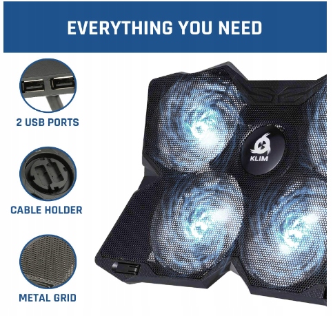 - Багатофункціональний. Klim Wind має 2 порти USB, тому ви можете вільно ним користуватися. Охолоджує ваш комп'ютер незалежно від віку чи інтенсивності використання. Наші клієнти досягли чудових результатів із іграми, редагуванням фото та відео та старими ноутбуками. Коли ваш ноутбук гарячий і працює повільно, ефект охолодження безперечно підвищить його продуктивність. Також можна використовувати з PS4 або Xbox One.