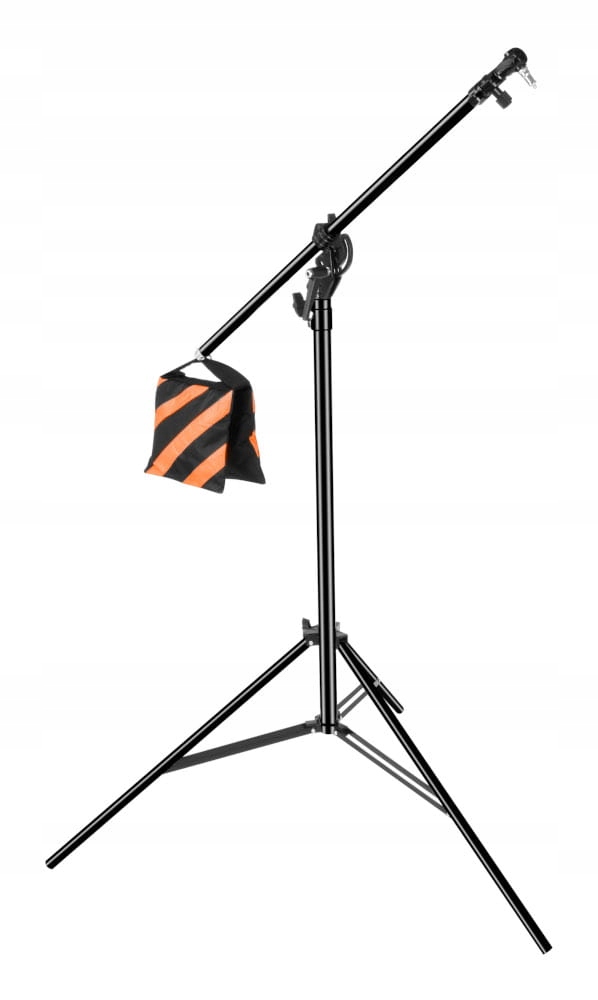 - штатив з міцного алюмінієвого сплаву - надзвичайно стійка конструкція, широка відстань між ніжками, додаткова противага для руки - максимальне навантаження від 3 до 5 кг (в залежності від висоти та конфігурації штатива) - максимальна висота штатива становить цілих 375 см - висувна "стріла" довжиною 103 - 188,5 см (також може використовуватися як окрема опора для освітлювальних аксесуарів або мікрофона) - стандартний штифт 16 мм з 1/4" і 3/! Різьба 8" дозволяє встановлювати всі типи популярних ламп і аксесуарів