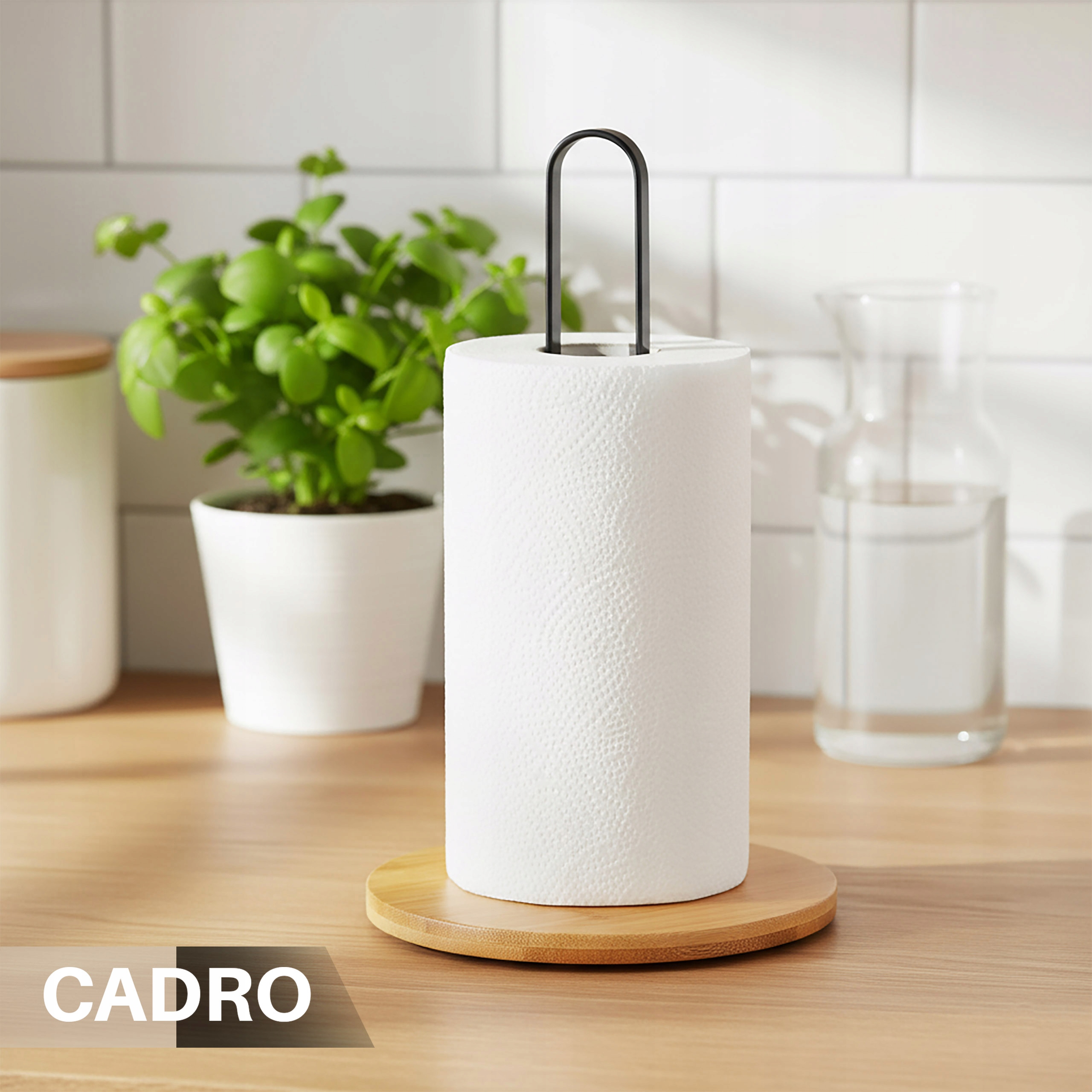Сучасний акцент на вашій кухні! Цей елегантний тримач для паперових рушників поєднує натуральне бамбукове дерево з чорним матовим металом. Це стильне та практичне рішення, яке завжди матиме паперовий рушник під рукою та додасть вашій кухні професійного вигляду.