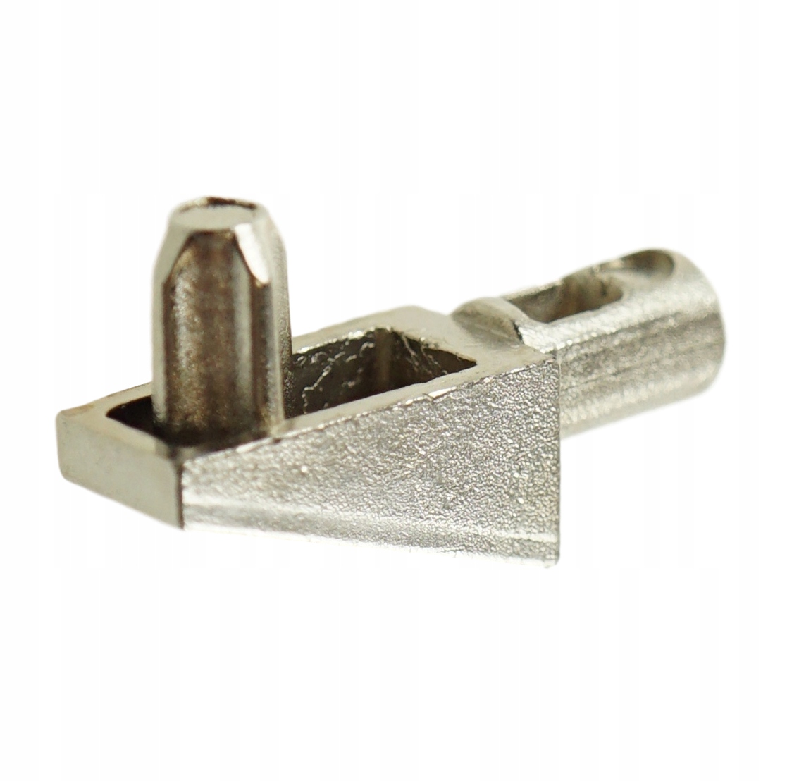 Полиці використовуються в дерев’яних або меблевих полицях. Опора має два штирі для установки в корпус меблів. Зверху ставлять поличку і просвердлюють в ній отвір для шпильки. Завдяки цьому ми захищаємо полицю від вислизання з меблів. Це сучасний тип опори, який використовується в меблях. Особливо рекомендується для сучасних меблів.