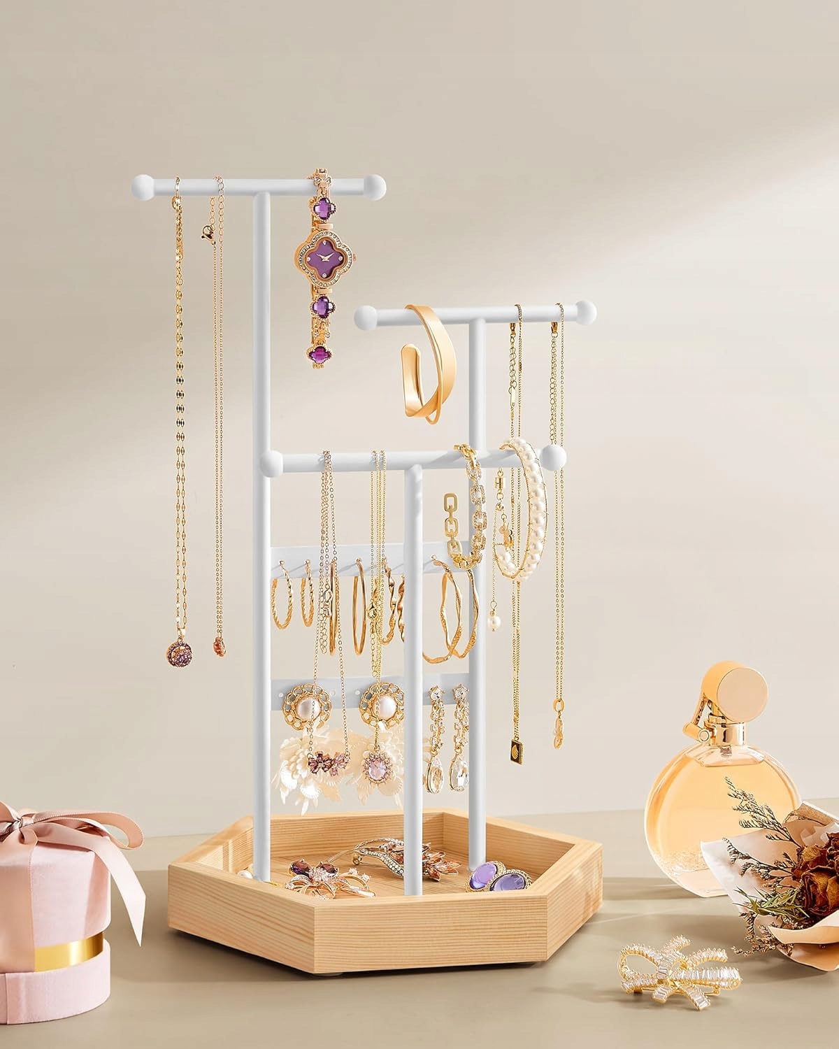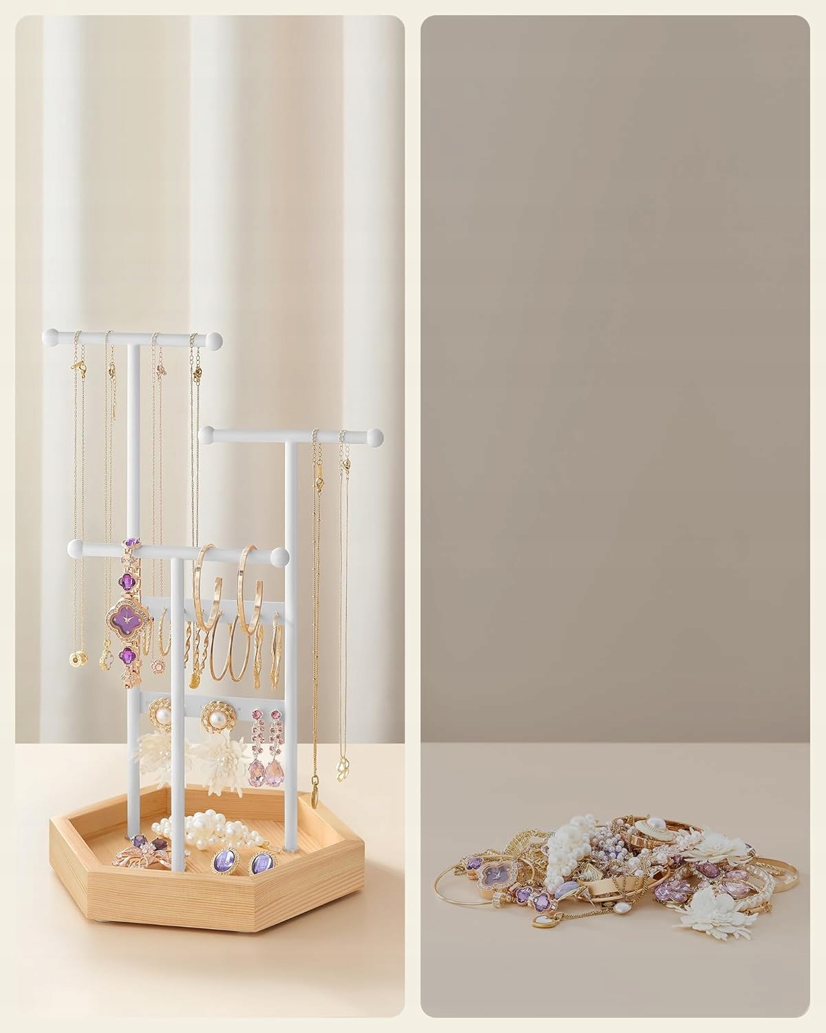 Стильний і практичний органайзер, який допоможе вам упорядкувати всі ваші улюблені аксесуари - сережки, браслети, намиста та каблучки. Ідеально підходить для повсякденного використання.