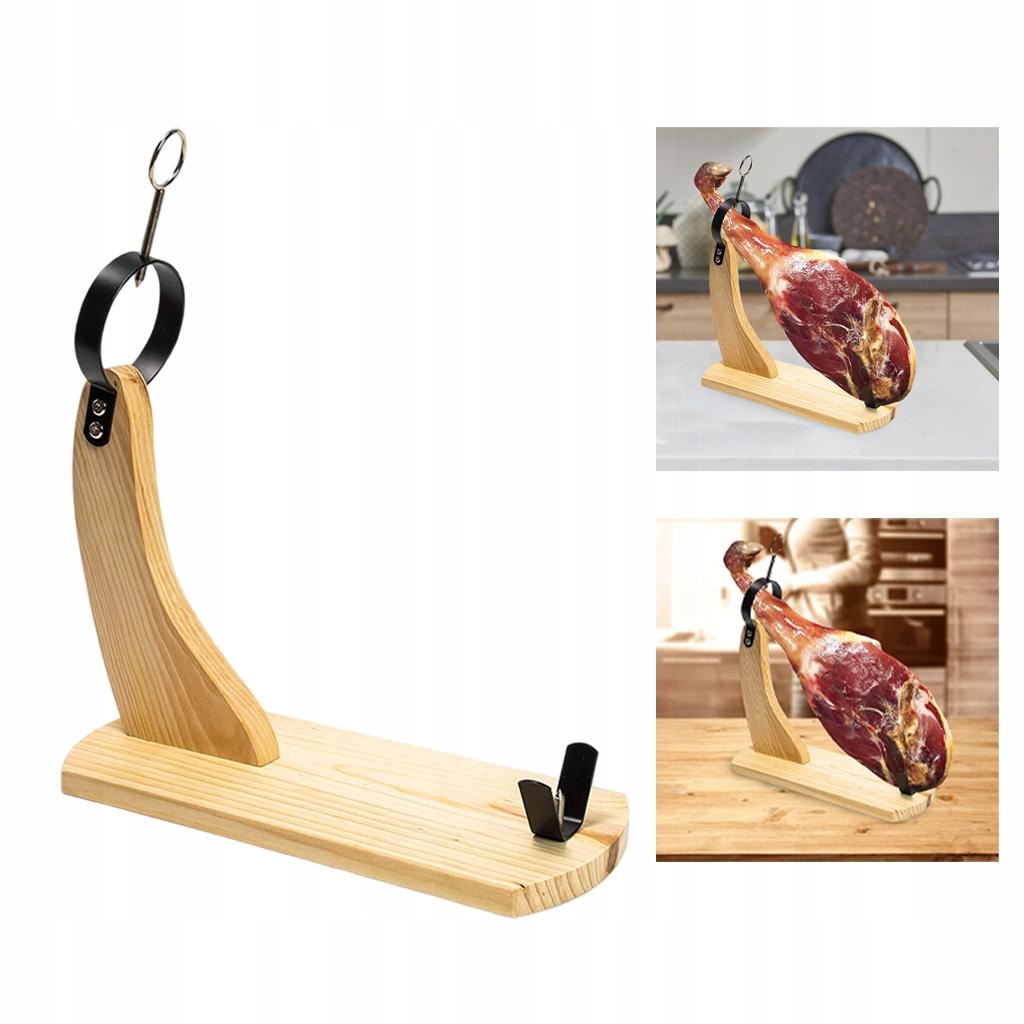 Надійна якість: Тримач для шинки виготовлено з високоякісної соснової деревини та поставляється з гвинтами та викрутками, які легко встановити, нековзка накладка на основі допомагає запобігти випадковому ковзанню під час копчення чи випічки.