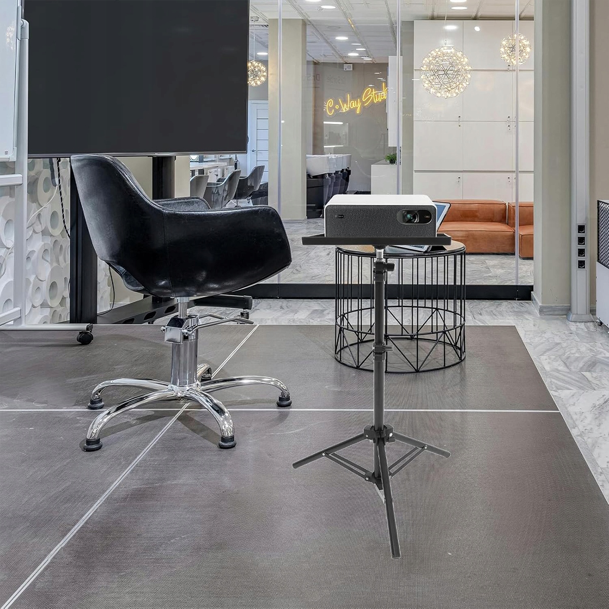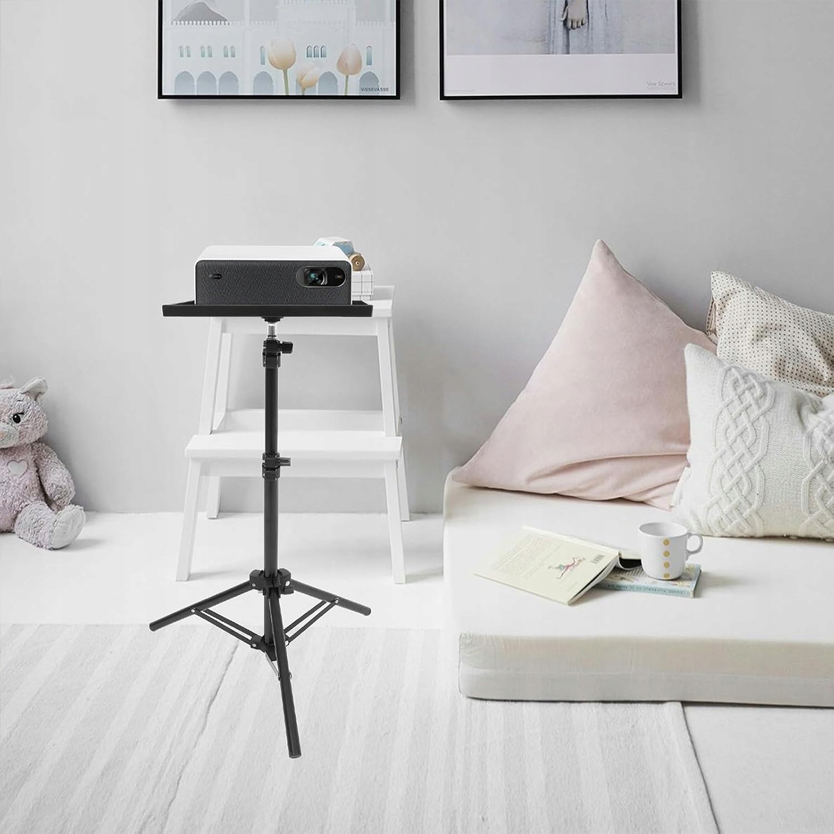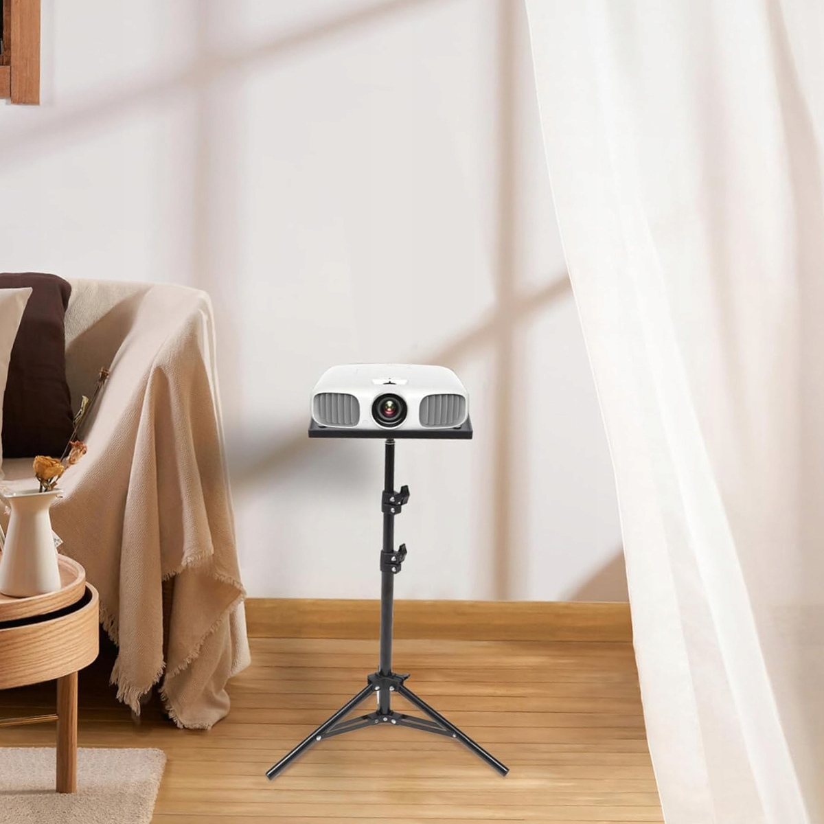 Тонку складану підставку для проектора можна використовувати для презентацій, записів, лекцій і промов. Завдяки швидкій і легкій збірці підставка ідеально підходить для використання вдома, на сцені чи в студії, як у приміщенні, так і на вулиці.