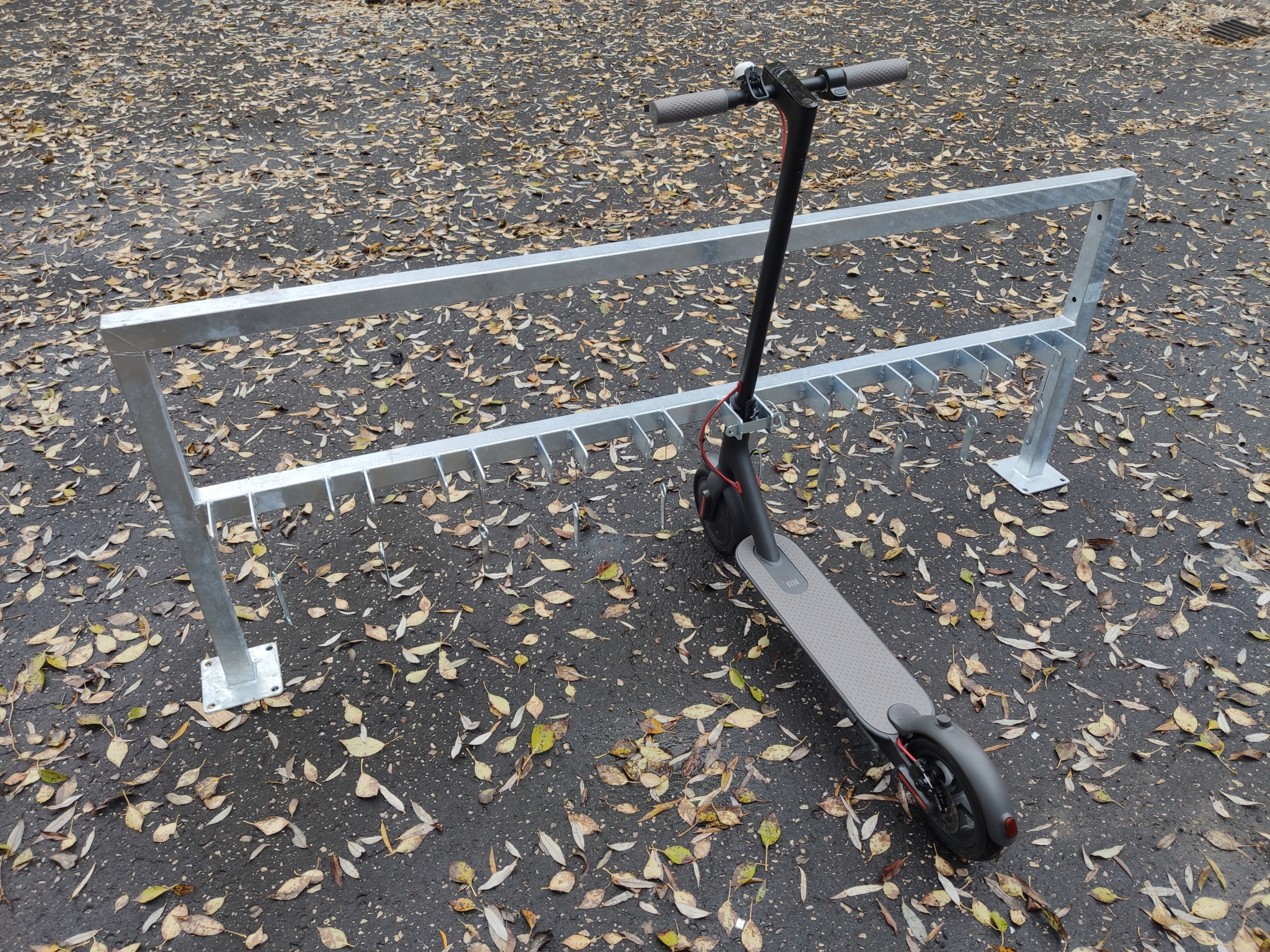 Стійки U-подібні ворота для скутера з поперечиною – наш продукт було створено з огляду на зростаючу популярність подорожей на транспортних засобах, таких як скутери. У часи, коли велобагажників досить багато і паркувати скутер проблематично, наша компанія придумала ідею паркування скутера. Підставка з високою гарантією безпеки і здатністю захистити самокат від крадіжки. Щоб убезпечити самокат, достатньо мати при собі невеликий замок - вставивши кермо самоката в ручки, вставте ключ і закріпіть його на замок, або припаркуйте самокат і закріпіть його своїм замком на середньому профілі. Стійка гарячеоцинкована, що гарантує найсильніший захист від корозії на ринку. Наш продукт був адаптований до всіх типів скутерів, у тому числі електричних.
