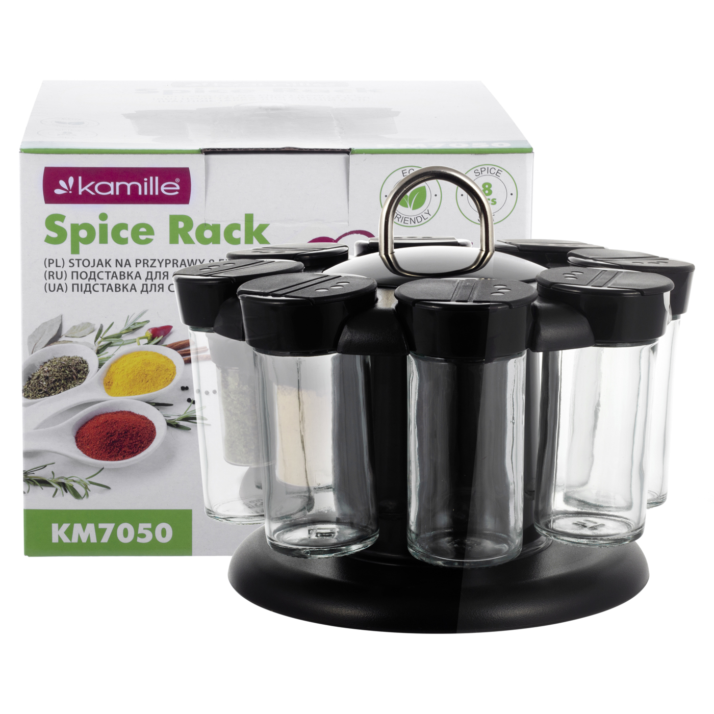 Набір для спецій Обертова підставка для спецій 8 банок KAMILLE KM-7050