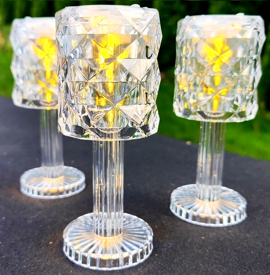 Кожна ПІДСТАВКА ПІД СВІЧКУ з пластику має декоративну імітацію кришталю на ніжці. Тепле світло світлодіодного світильника додасть будь-якому інтер'єру теплу та приємну атмосферу.
