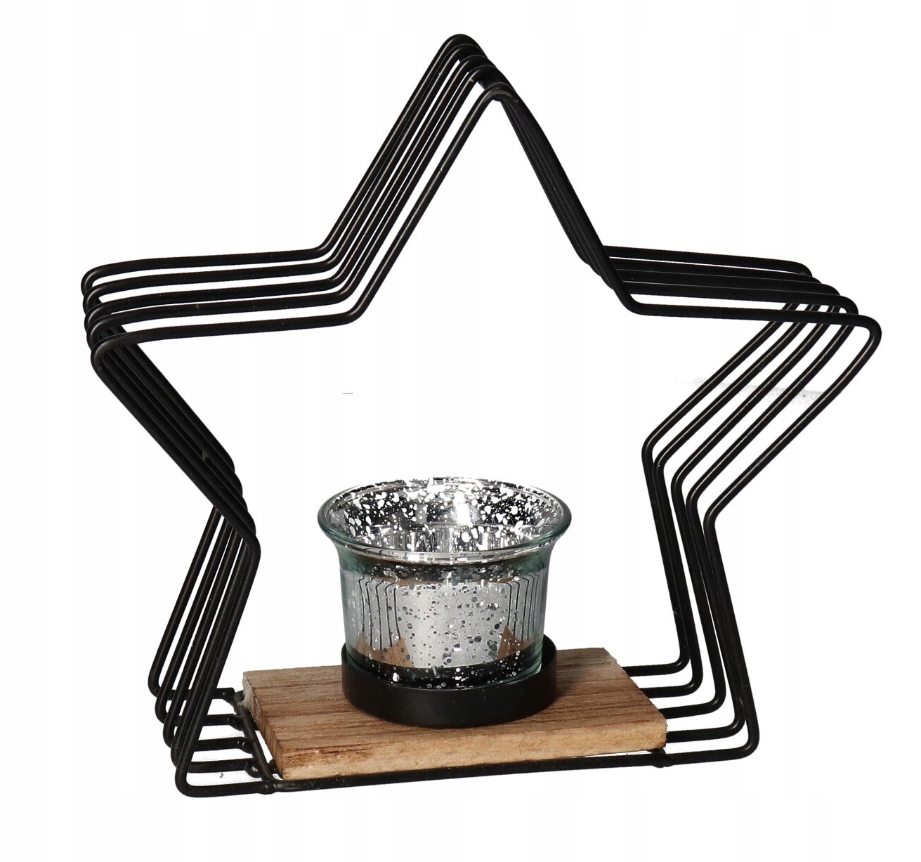 ПІДСТАВКА ДЛЯ СВІЧОК З МЕТАЛЕВОЮ ЗІРКОЮ 17 СМ. НОВИЧНА ПРИКРАСА