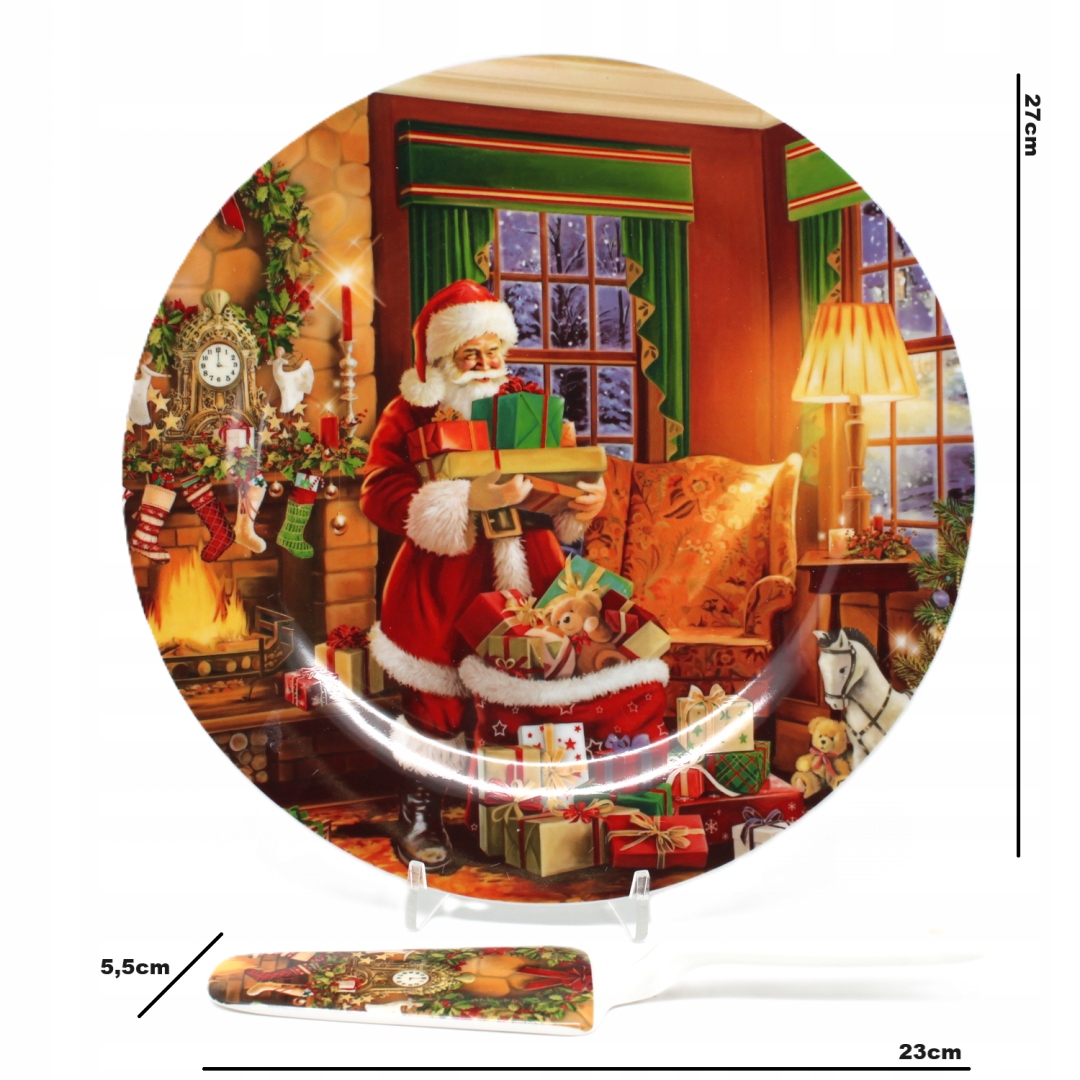 Красива порцелянова тарілка з лопаткою з різдвяним мотивом. Він також ідеально підходить як прикраса столу чи комода вдома та на роботі. Можна використовувати як самостійну прикрасу столу для подачі новорічної випічки. Але не тільки це! З його допомогою можна створювати гарні ялинкові прикраси - все, що вам потрібно, це фігурки, гілочки і трохи творчості. Ідеальний подарунок.