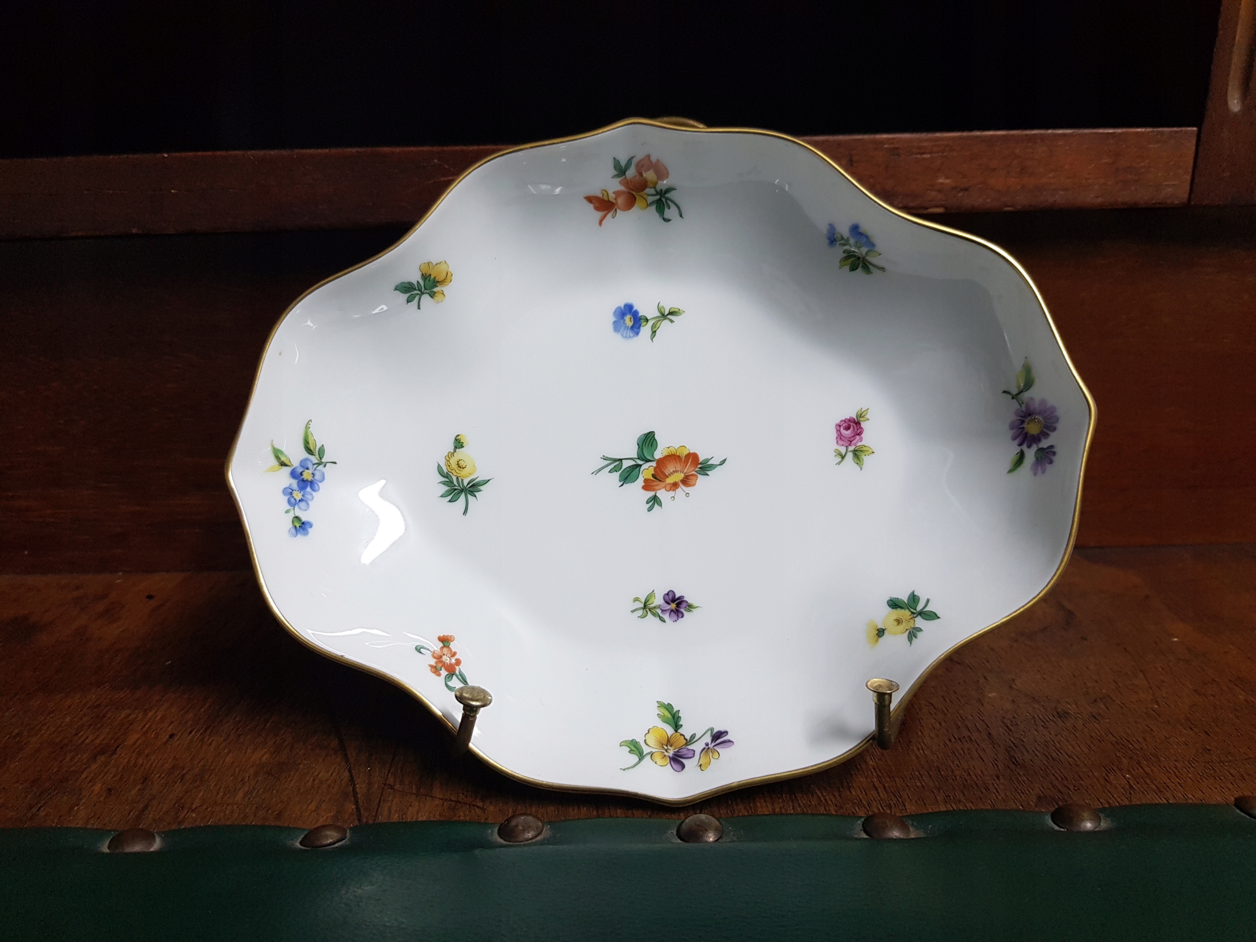 Предметом аукціону є невелика підставка для тортів Hutschenreuther. Прикрашена дрібними квітами. Позолота прибл.