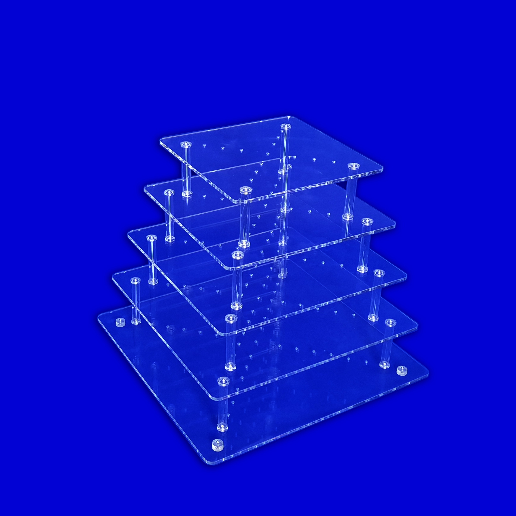 Велика підставка для торта у версії PRO, виготовлена з оргскла товщиною 6 мм, на 320 монопорцій діаметром 7 см або 227 діаметром 8 см + торт діаметром 15 см, розміщений на верхній частині.