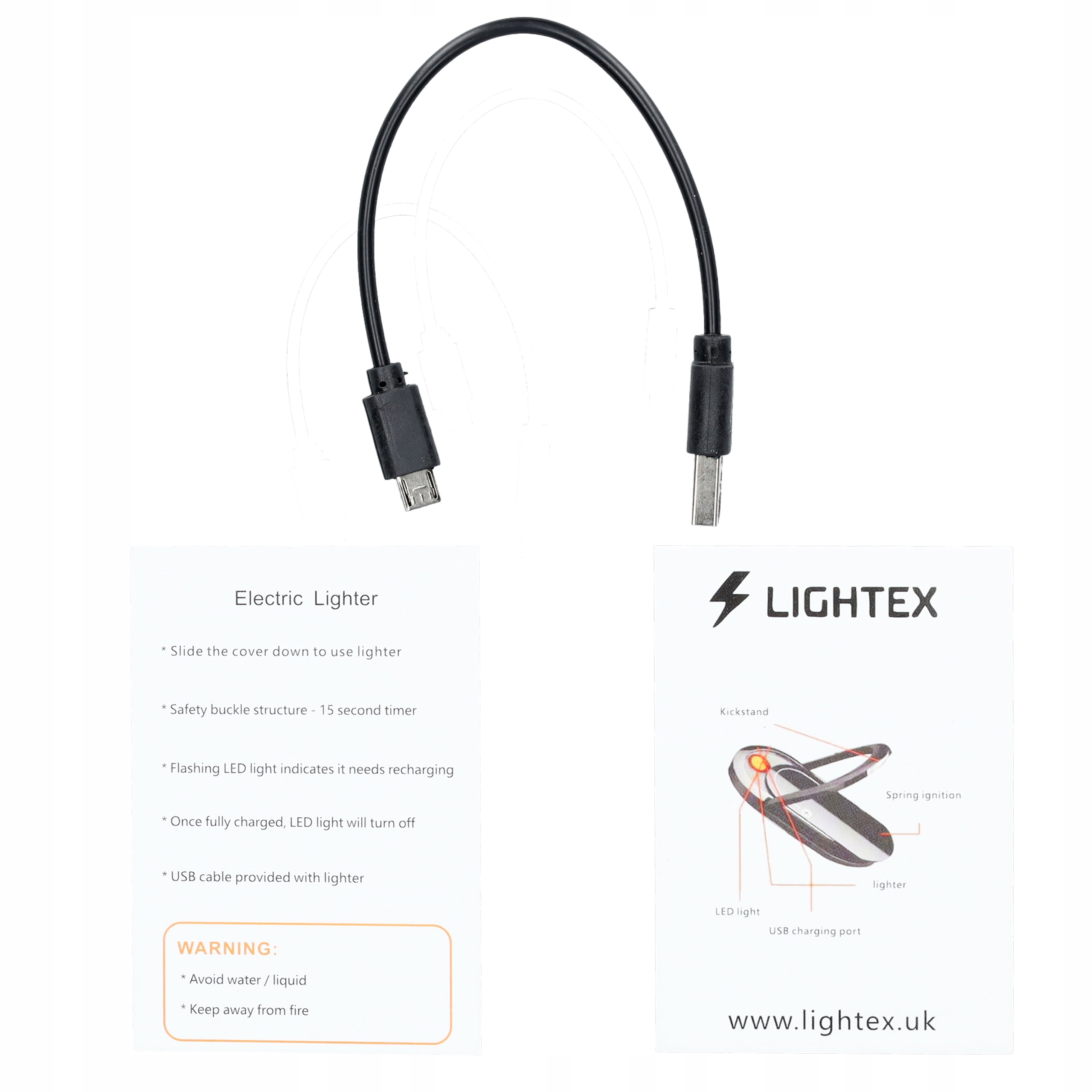 - Електронна запальничка, перезаряджається, постачається з кабелем USB
