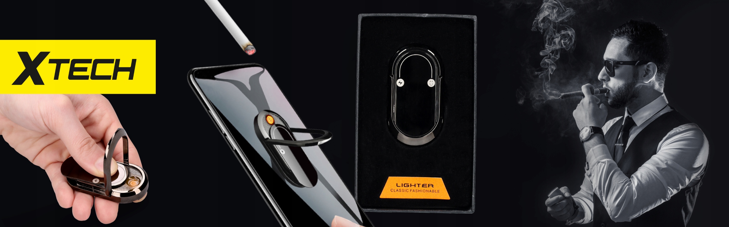 - USB електрична запальничка з тримачем для пальців, непроникна та вітрозахищена.