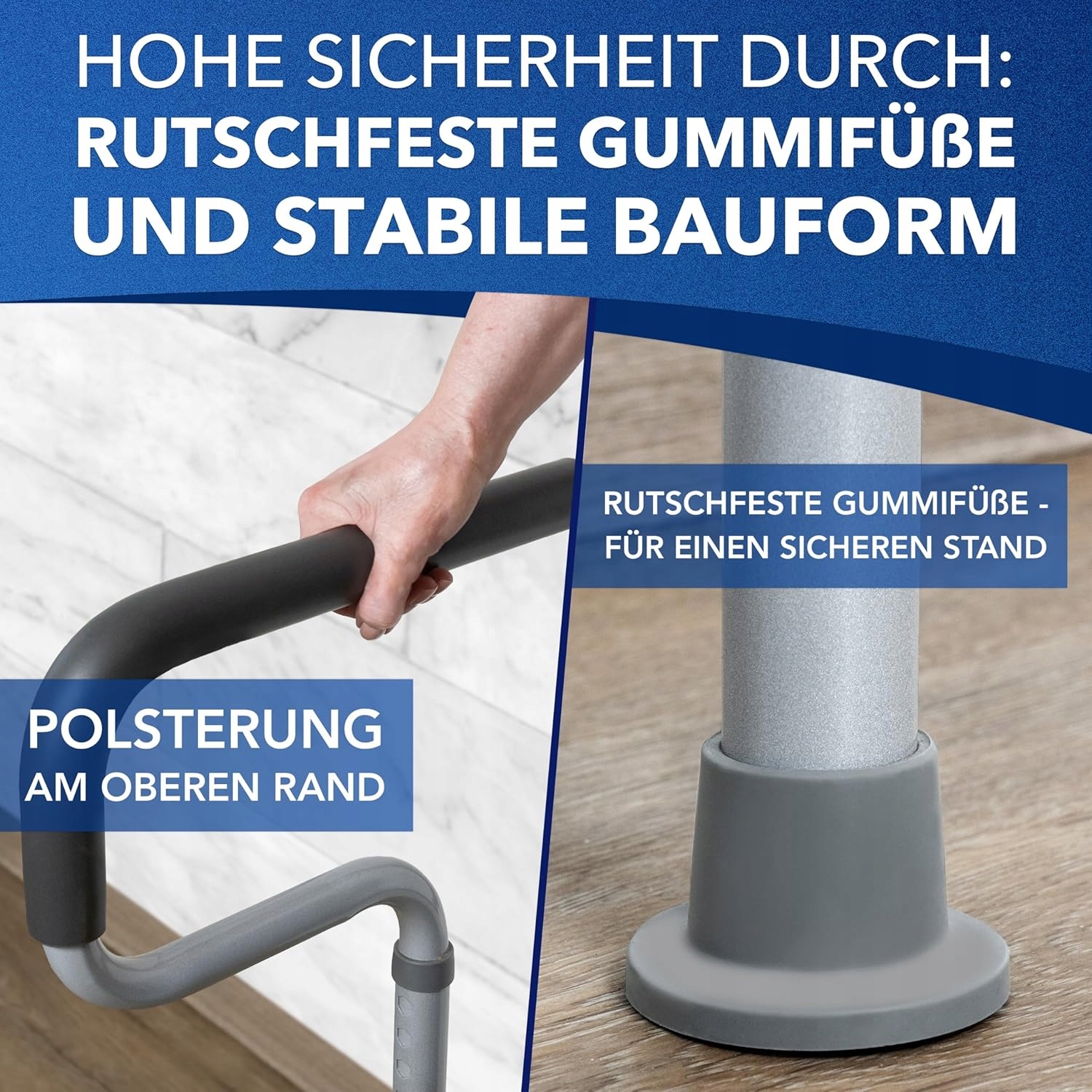 Опора для унітазу міцна завдяки високоякісним сталевим трубам зі з’єднувальною системою та нековзкими гумовими ніжками, які забезпечують стійкість на будь-якій поверхні. Вантажопідйомність до 150 кг гарантує вашу безпеку.