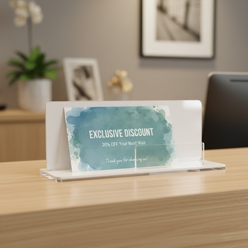 Цей сучасний стенд розроблено для ефективної презентації ваучерів, запрошень і подарункових карток. Він чудово працюватиме біля стійки реєстрації, стійки у вітальні або як естетичне доповнення до торгового стенду.