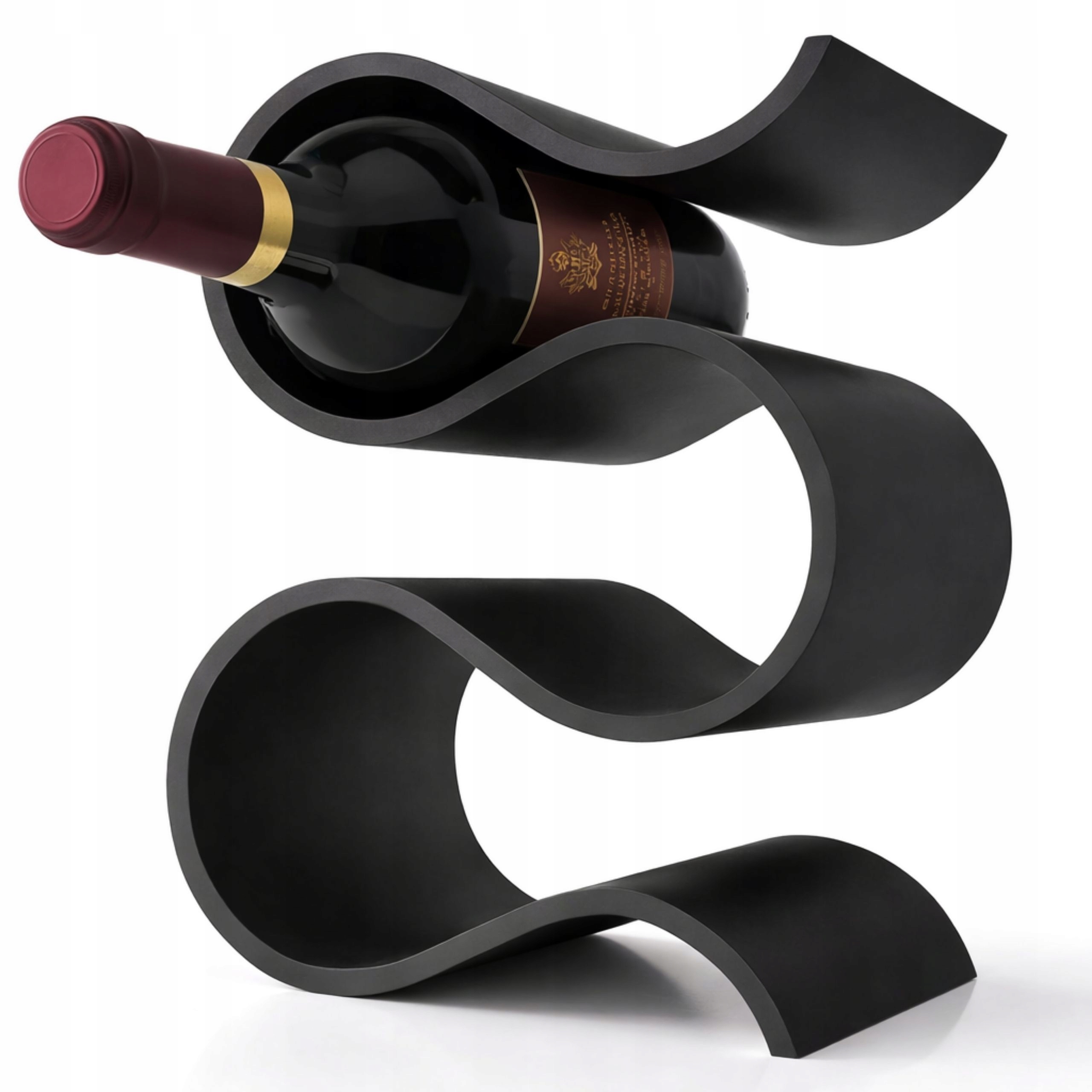Сучасна винна стійка на 4 пляшки - це практичний органайзер і елегантна прикраса інтер'єру. Хвиляста «S»-подібна форма створює освітлення, а чорний колір підкреслює сучасний мінімалістичний стиль. Підставка добре виглядає на кухні, у вітальні, їдальні та в домашньому барі, допомагаючи організувати пляшки на стільниці, полиці чи комоді.