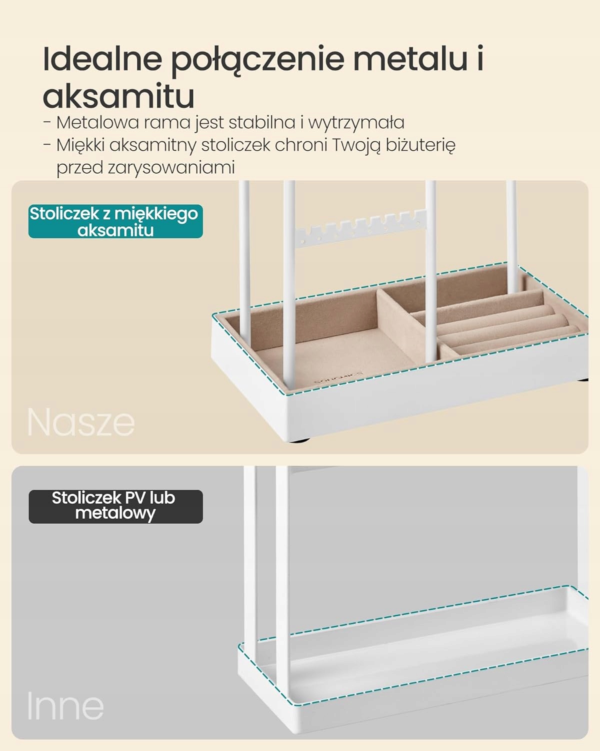 ✅ Міцна конструкція з оксамиту: стійкий металевий каркас забезпечує довговічність, а м'яка оксамитова основа захищає прикраси. від подряпин.