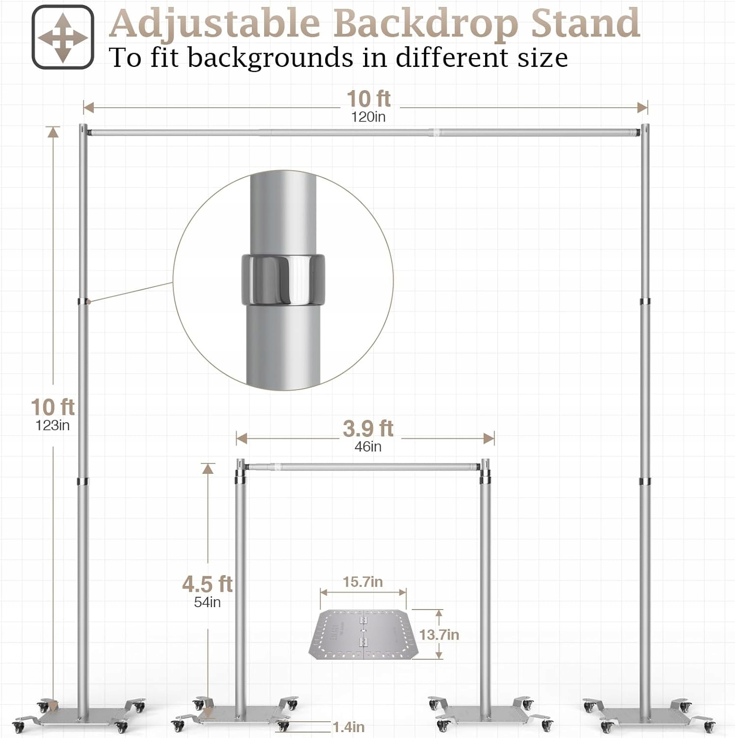 ✅【Регульована підставка для фону】10 x 10 футів для труб і штор мають регульовану ширину (3,9-10 футів), регульовану висоту (4,5-10 футів). Можна довільно зібрати в різних розмірах відповідно до ваших потреб