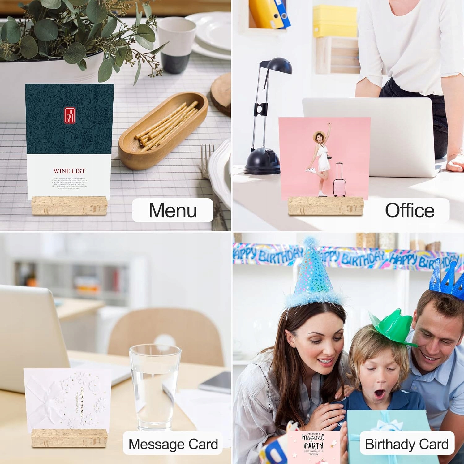 【Простий у використанні】 Дерев’яний тримач карток має міцну конструкцію. Дно тримача плоске, тому ви легко розмістите його на столі - просто вставте в паз папірець або фотографію. Зверніть увагу, що ці дерев’яні тримачі карток підходять лише для зберігання легких предметів, таких як візитки, фотографії тощо.