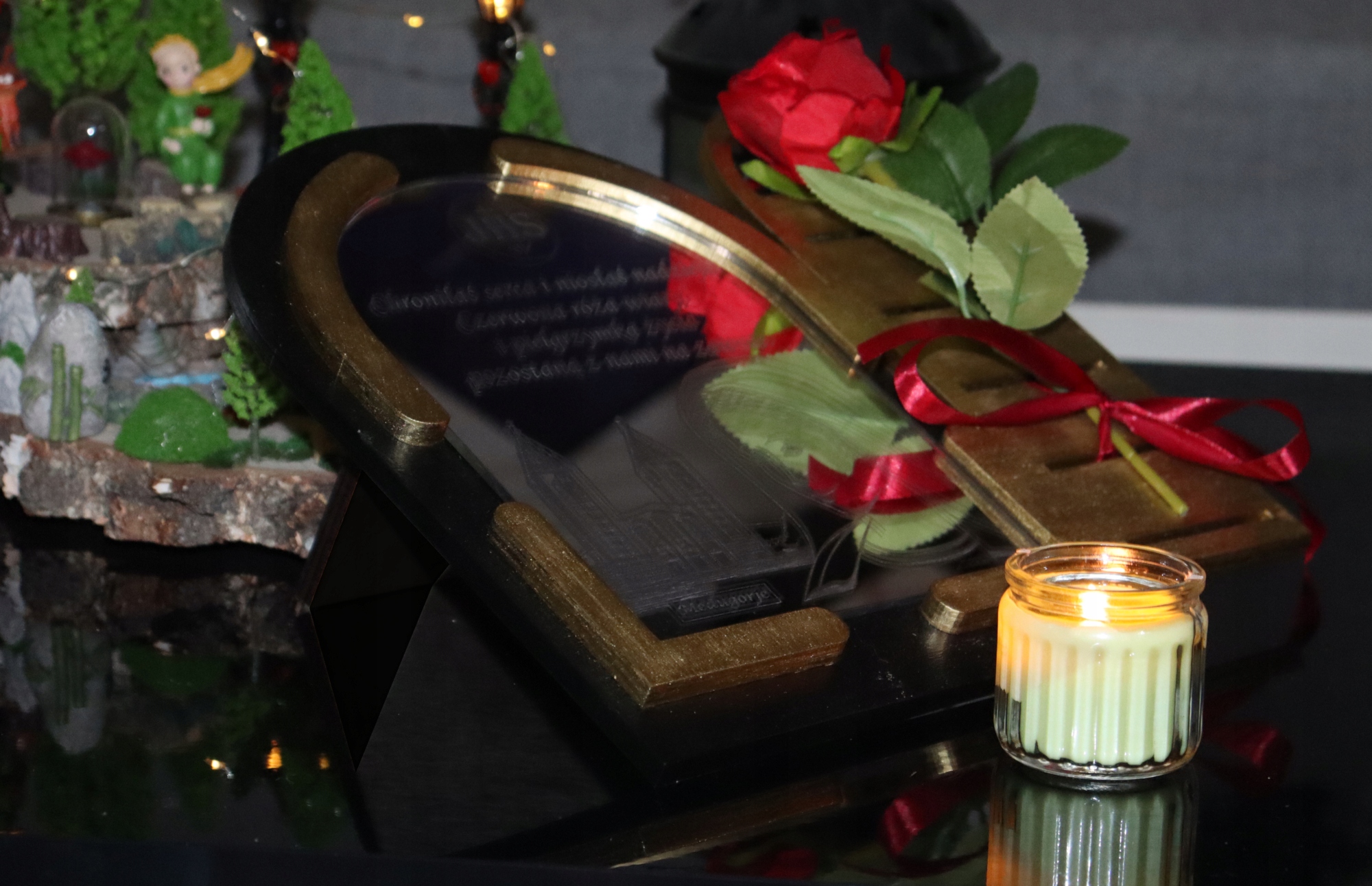 Ця тонка та естетична композиція стане ідеальним доповненням до будь-якої події - Дня всіх святих, ювілею чи інших важливих подій. Завдяки можливості гравіювання ви можете надати йому індивідуальний вимір.