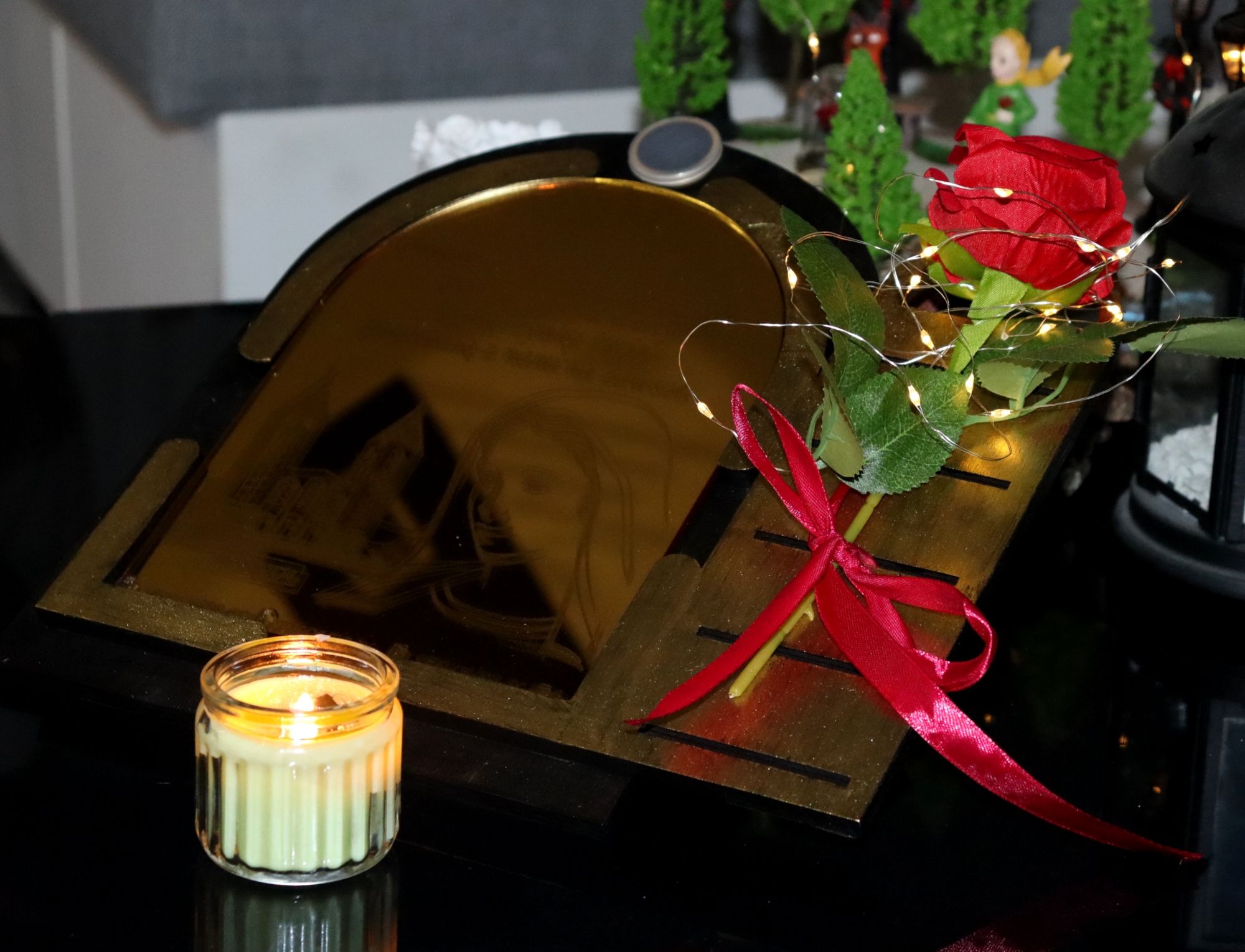 ПІДСТАВКА Композиція настільна книга ДЛЯ ГРОБИЛЬНОГО ГРАВІЮВАННЯ троянда дзеркальна сонячна LED