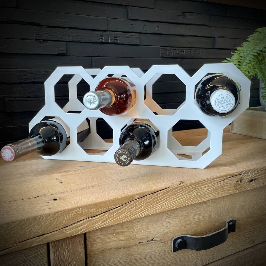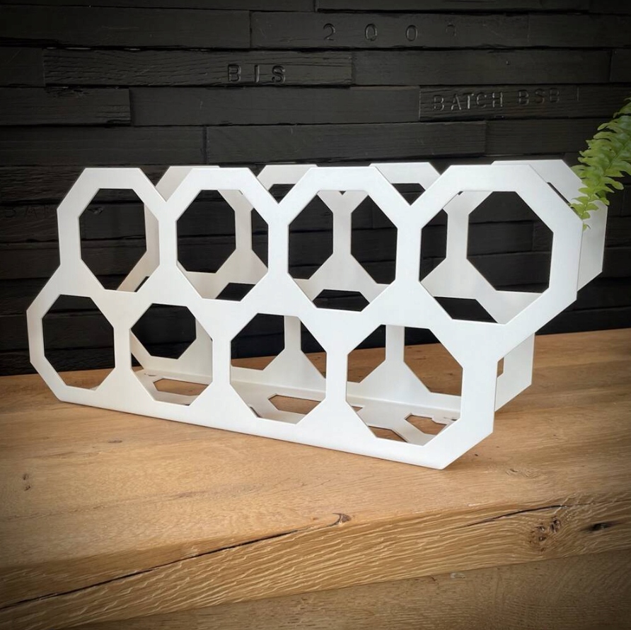Стійка для вина чудово виглядає на полиці чи стільниці та однаково добре виглядає на стіні. Чудовий аксесуар також чудово підійде в якості подарунка. Для фарбування ми використовуємо найякіснішу порошкову фарбу: фасадну поліефірну, стійку до стирання та УФ-променів.