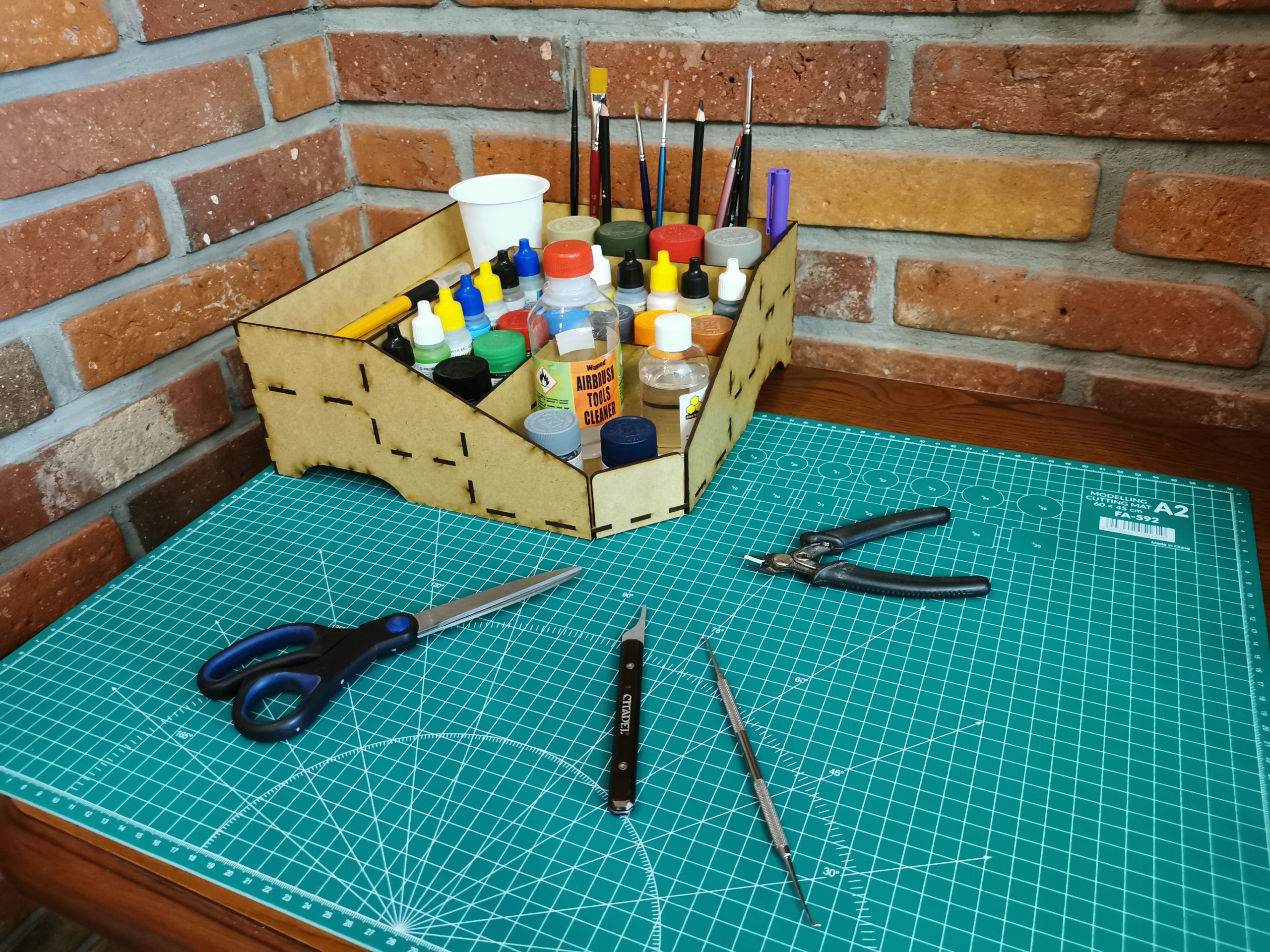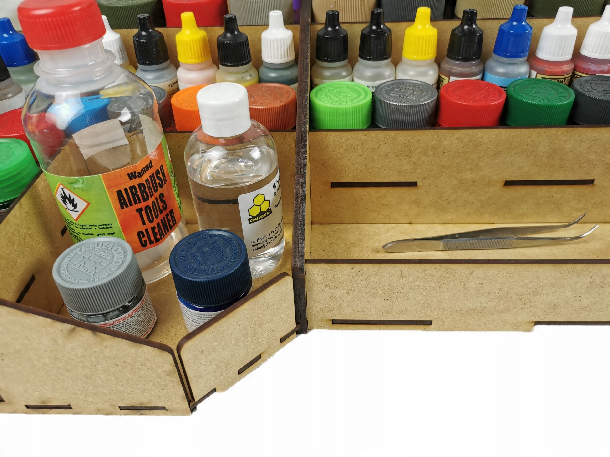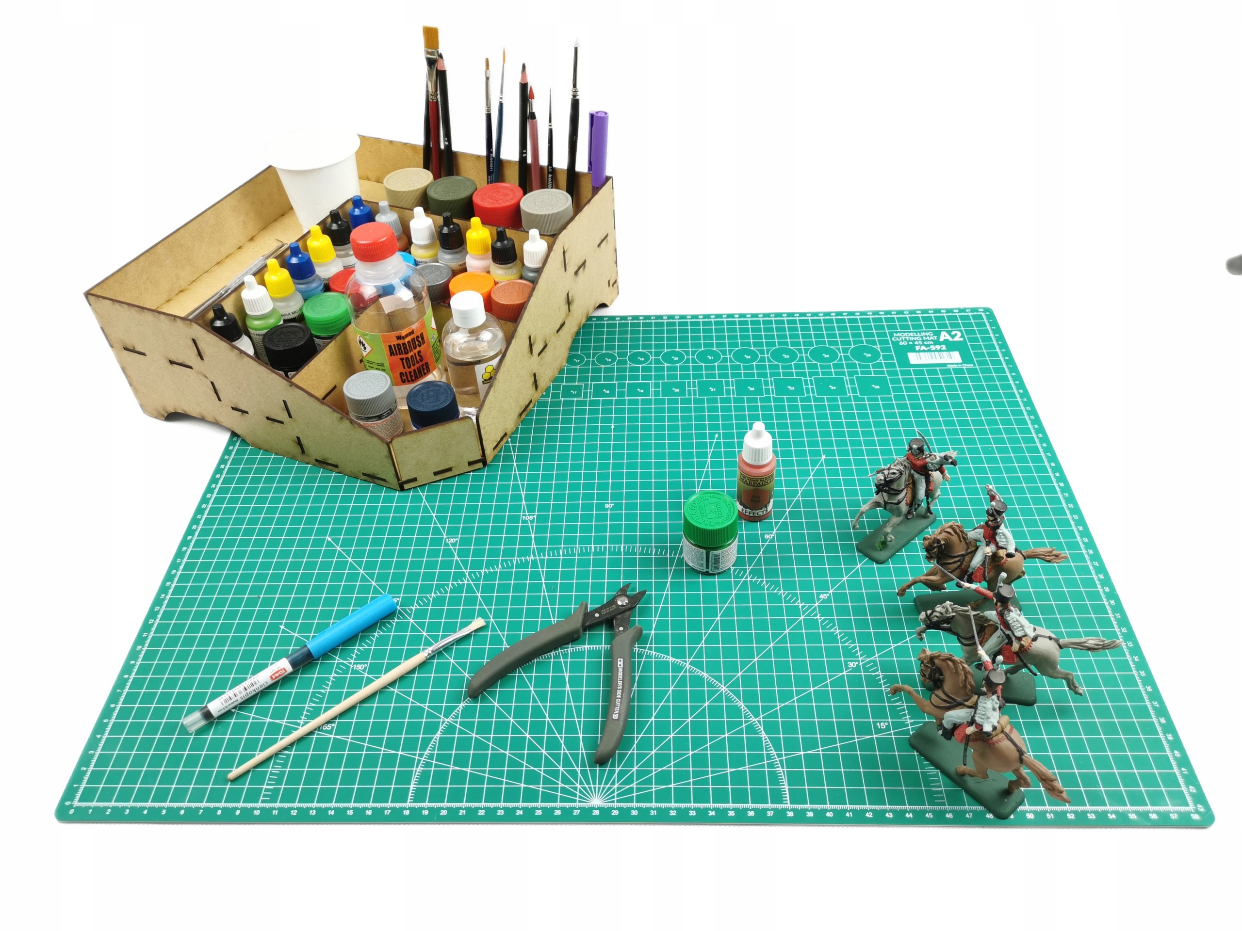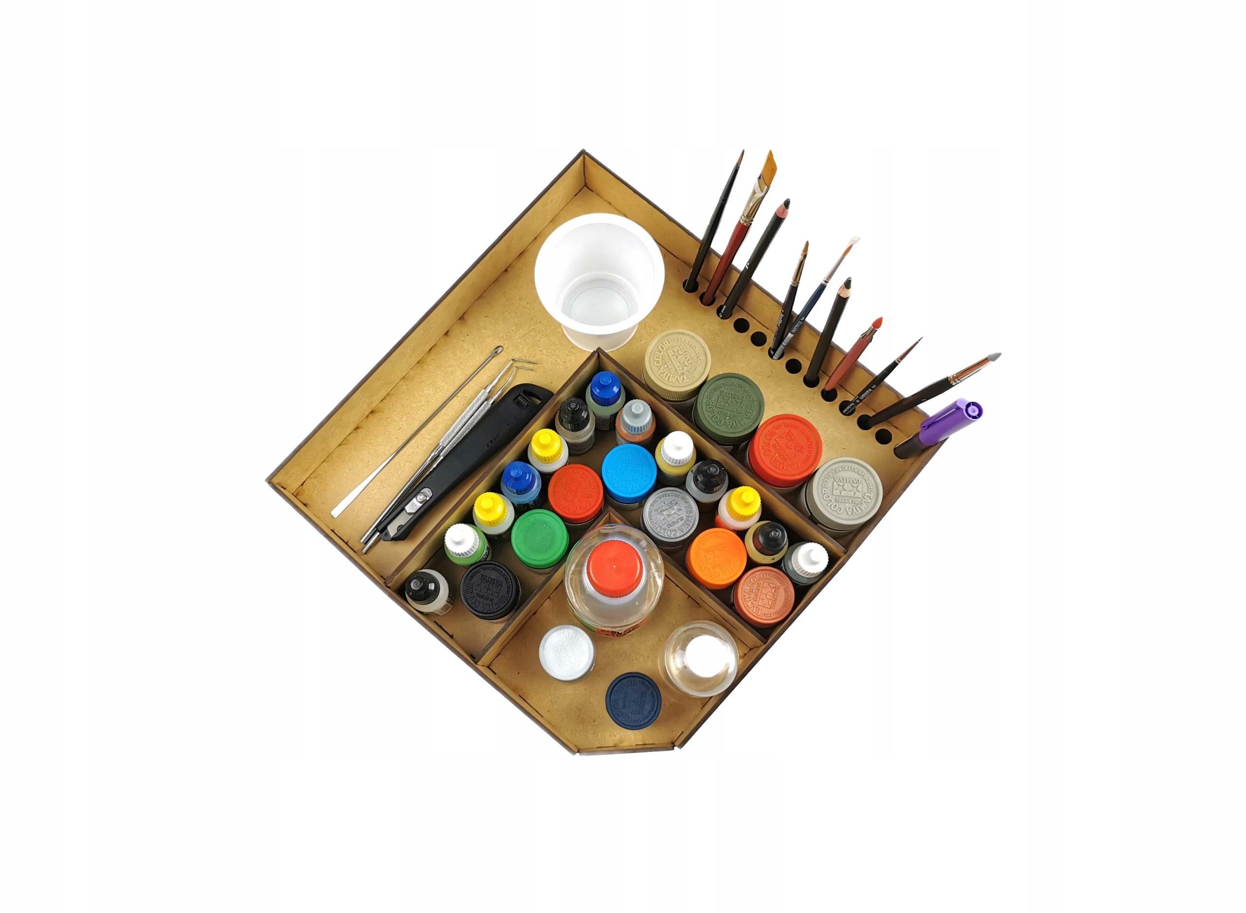 - Практичність: Добре продумані місця для пензлів, фарб і хімікатів дозволяють легко та впорядковано зберігати всі необхідні приладдя для моделювання.