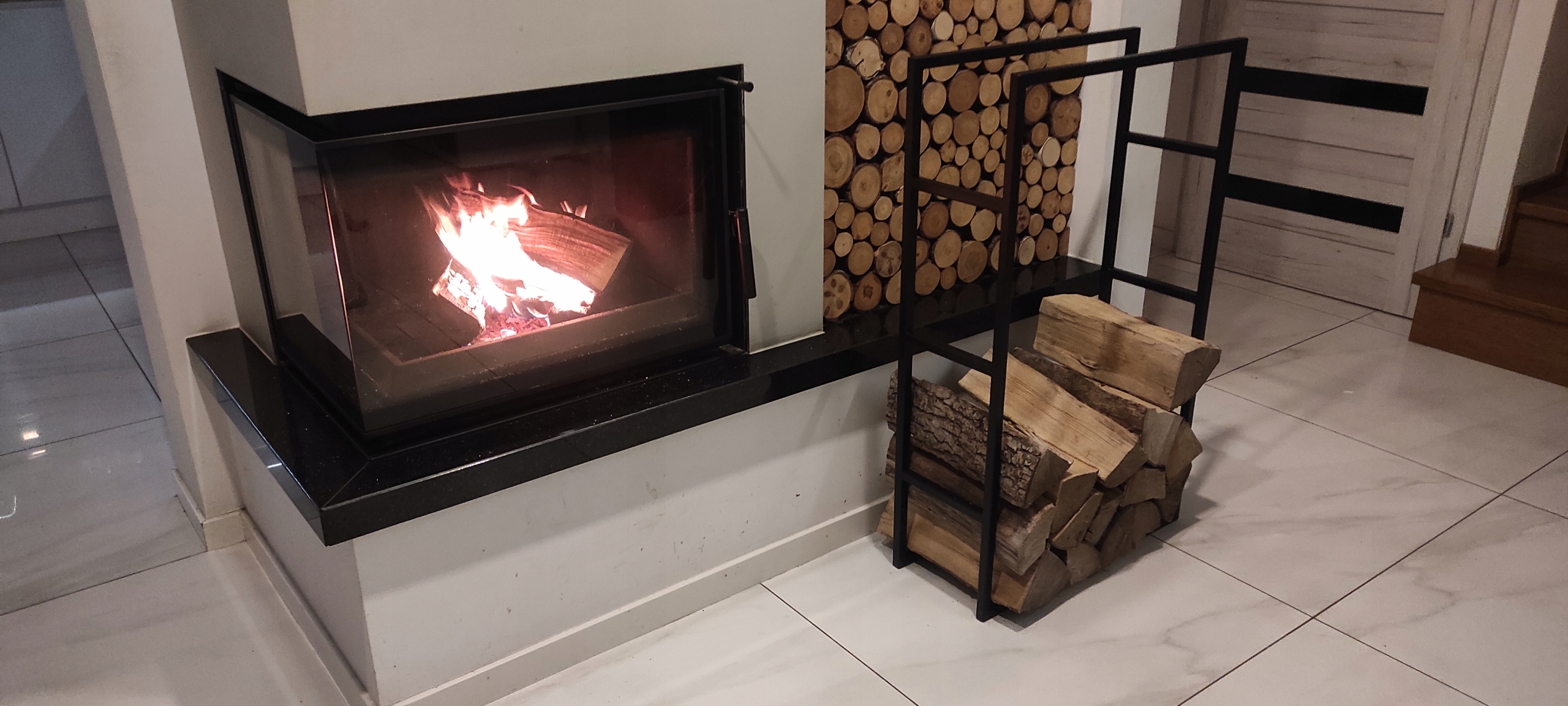 ✅ Міцна металева конструкція підставки дозволяє стильно зберігати дрова.