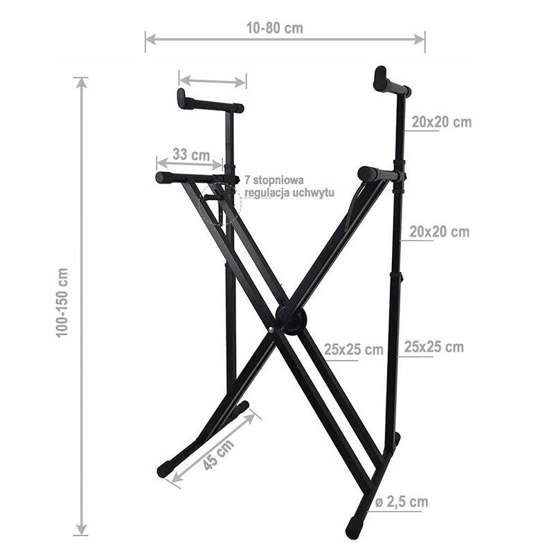 STAND4ME X6 є міцноюі дуже стабільною, повністю регульованою подвійною підставкою для клавіатури, портативна цифрове піаніно, клавіатура або синтезатор звуку. Він ідеально працює за будь-яких умов, тож якщо ви використовуєте два клавішні інструменти та цінуєте комфорт під час гри, ✅ репетиції STAND4MEі дім.