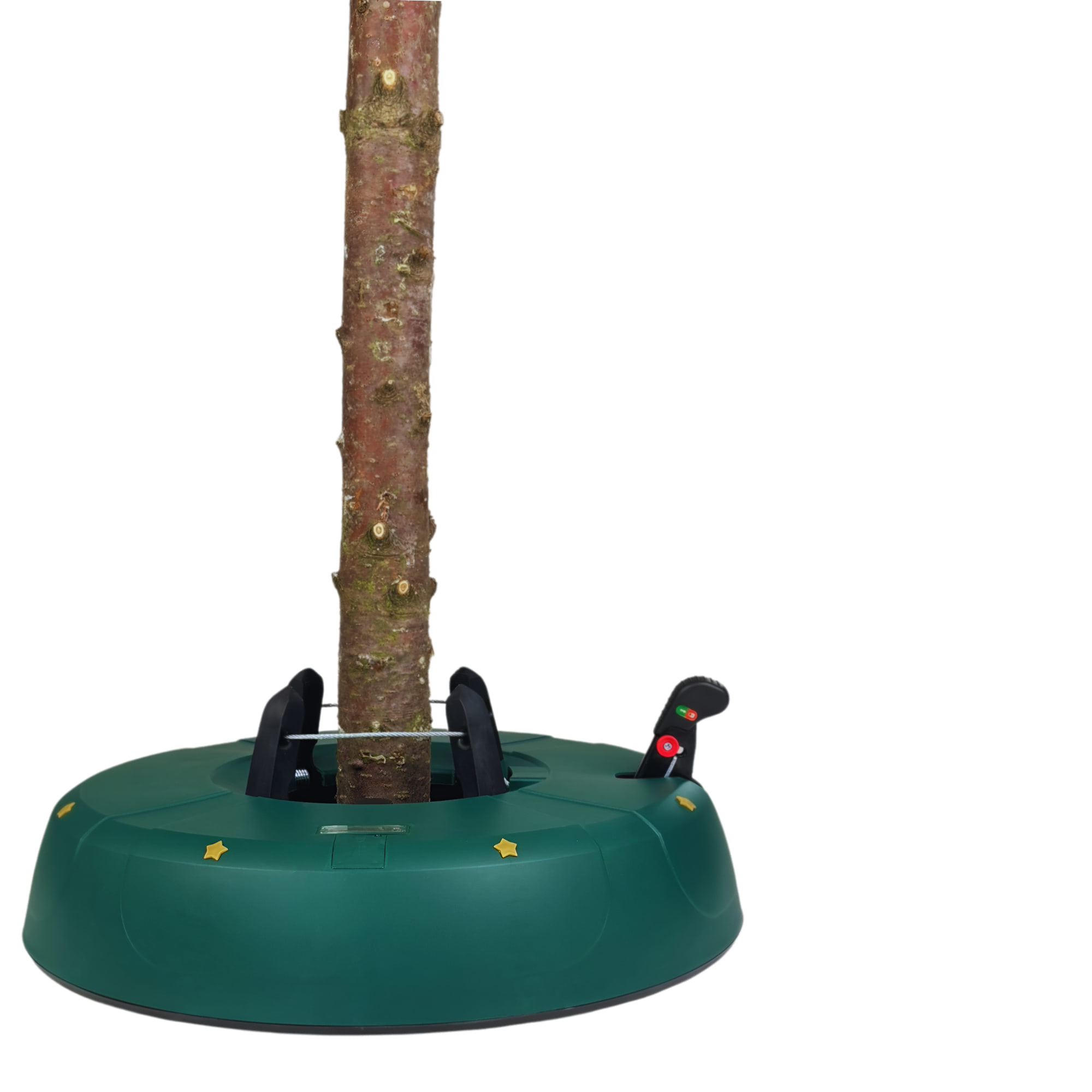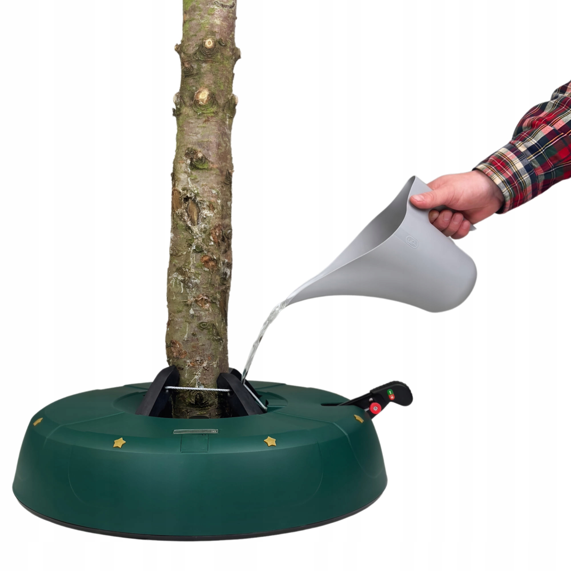 Підставка під ялинку Kamai® SELECT 4.5, призначена для новорічних ялинок висотою до 4,5 метрів, забезпечує стійкість завдяки вантажу 9 кг, ємності для води на 6,3 літра та запатентованій системі з 4 гачків, які автоматично затискають стовбур. Він оснащений індикатором рівня води, важільним фіксатором для запобігання випадкового відкривання та надійним затискним механізмом.