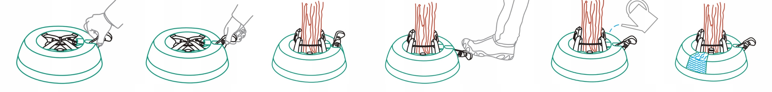 ✔️ Наповніть резервуар - Налийте воду в отвір, де розміщений стовбур ялинки.