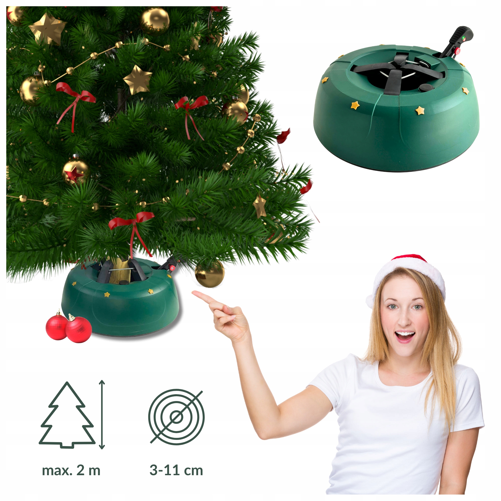 Ідеально підходить для стабілізації ялинок у будинках, квартирах, готелях, церквах, магазинах та інших громадських місцях. Підходить для всіх найпопулярніших видів ялинок, які продаються в Польщі та ЄС, таких як ялина, ялиця або сосна. Призначений для живих ялинок.