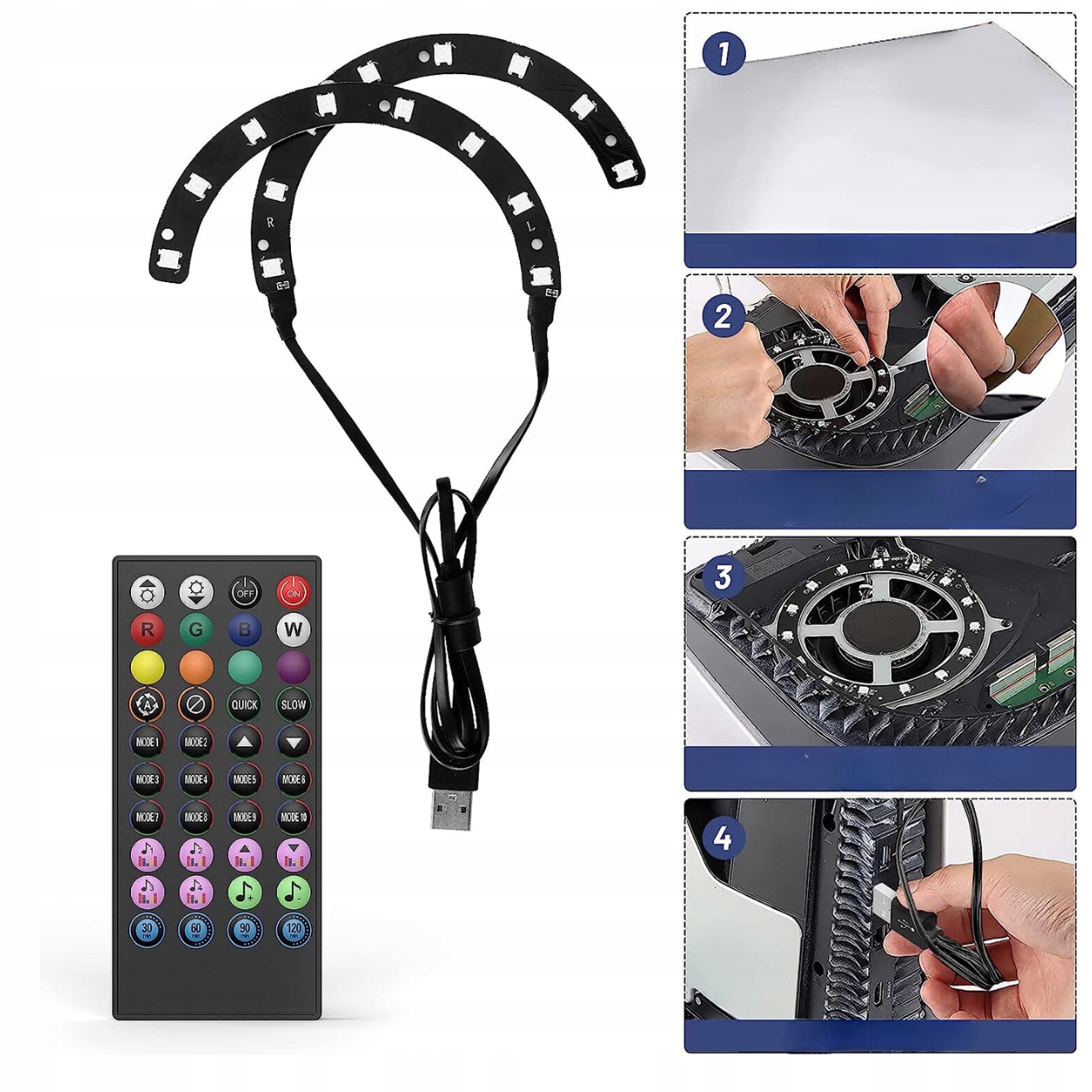 ОСВІТЛЕННЯ - світлодіодна стрічка RGB була розроблена спеціально для консолі PS5. Завдяки цій світлодіодній смузі PS5 із 7 кольорами та 16 ефектами ви можете вибрати різні кольори та ефекти, щоб створити епічну ігрову атмосферу.