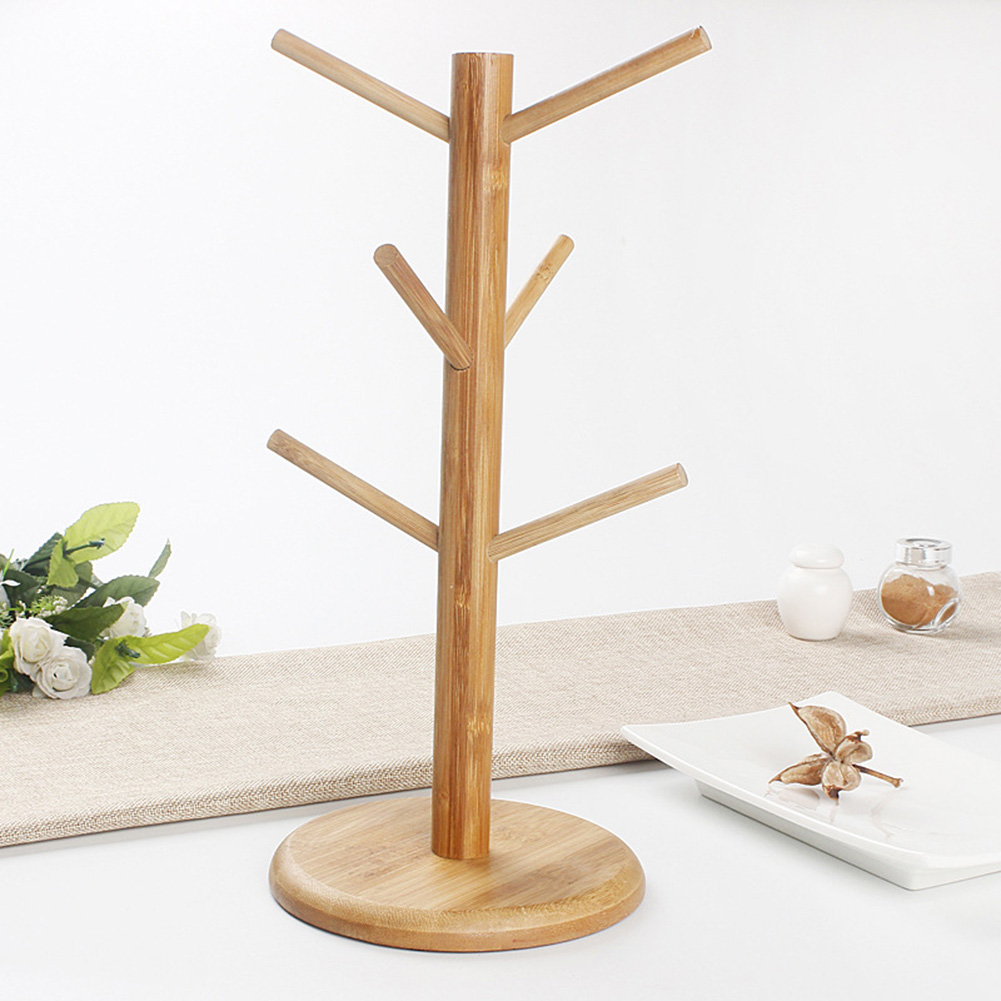 Підставка для чашки з бамбука Підставка під дерево 6 гачків Знімний тримач для чашки для чаю