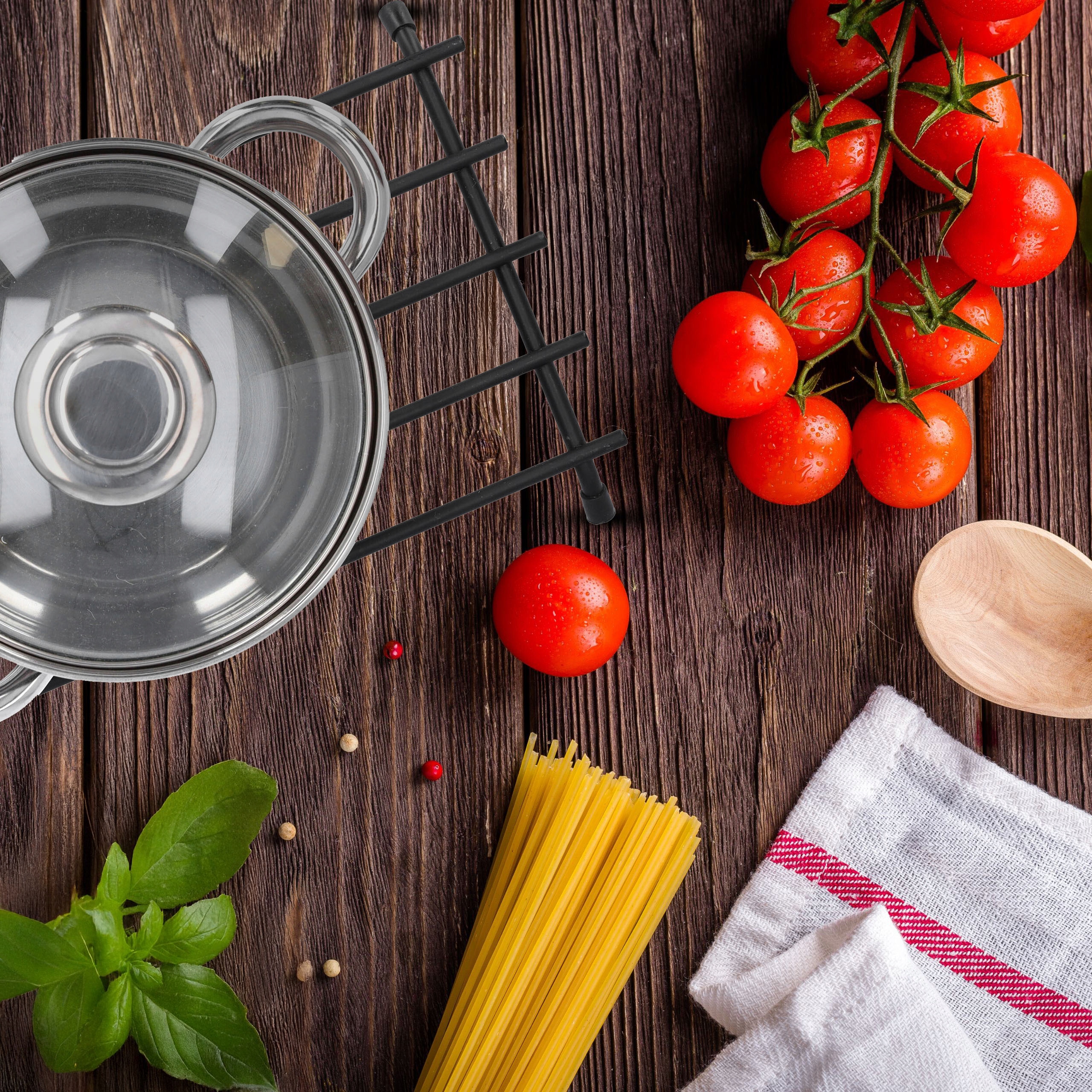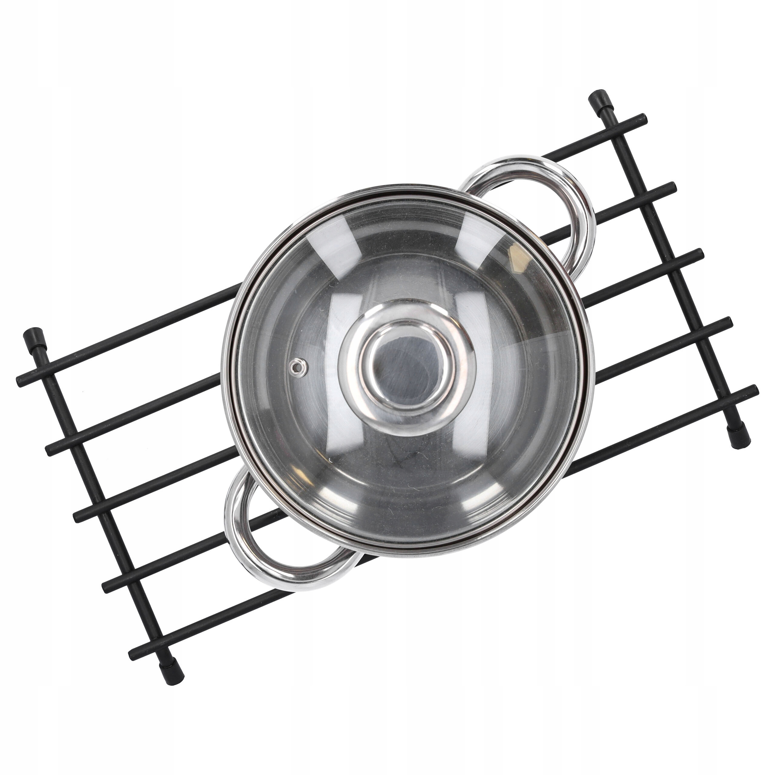 перехожий, виготовлений з міцної сталі, дозволяє безпечне розміщення гарячих горщиків або листів без ризику пошкодження столу або стільниці. Порошкове покриття забезпечує додаткову стійкість до температури.