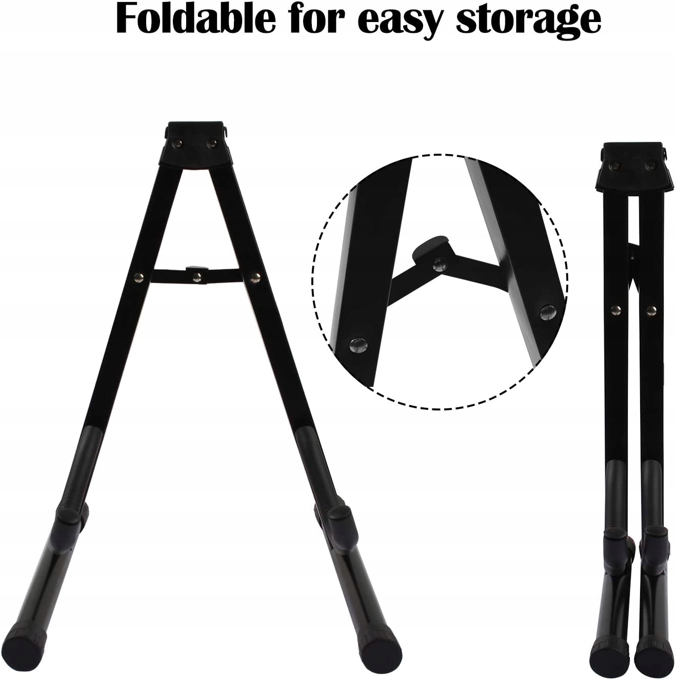 - Просте збирання, складна конструкція: складається за лічені секунди для компактного зберігання та зручного транспортування. Ця стійка для акустичної/електричної/бас-гітари спеціально розроблена у формі А; його можна легко скласти або розкласти за лічені секунди.