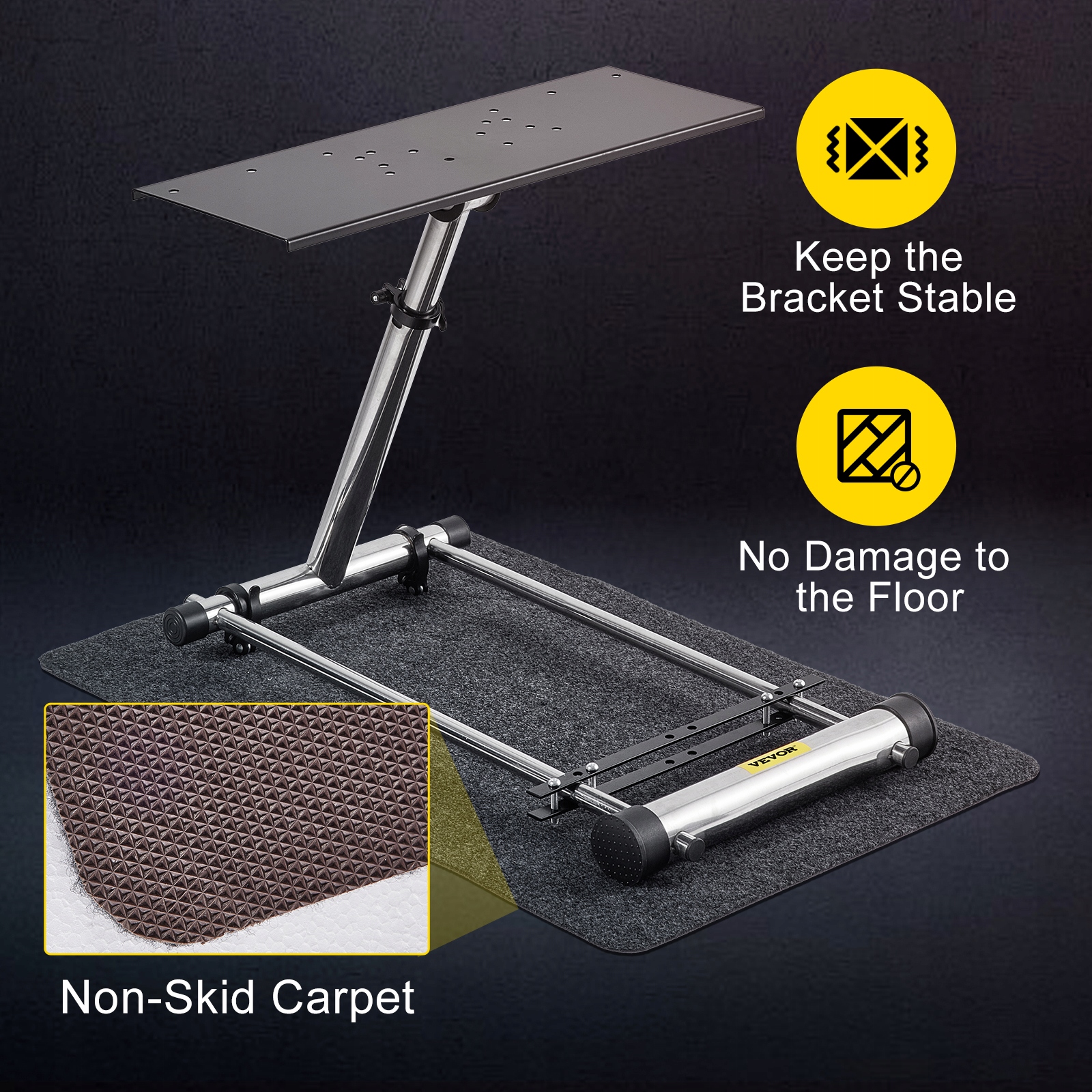 Кабіна гоночного симулятора оснащена килимом проти ковзання, що значно збільшує тертя між основою та підлогою. Вам не потрібно турбуватися про пошкодження підлоги.