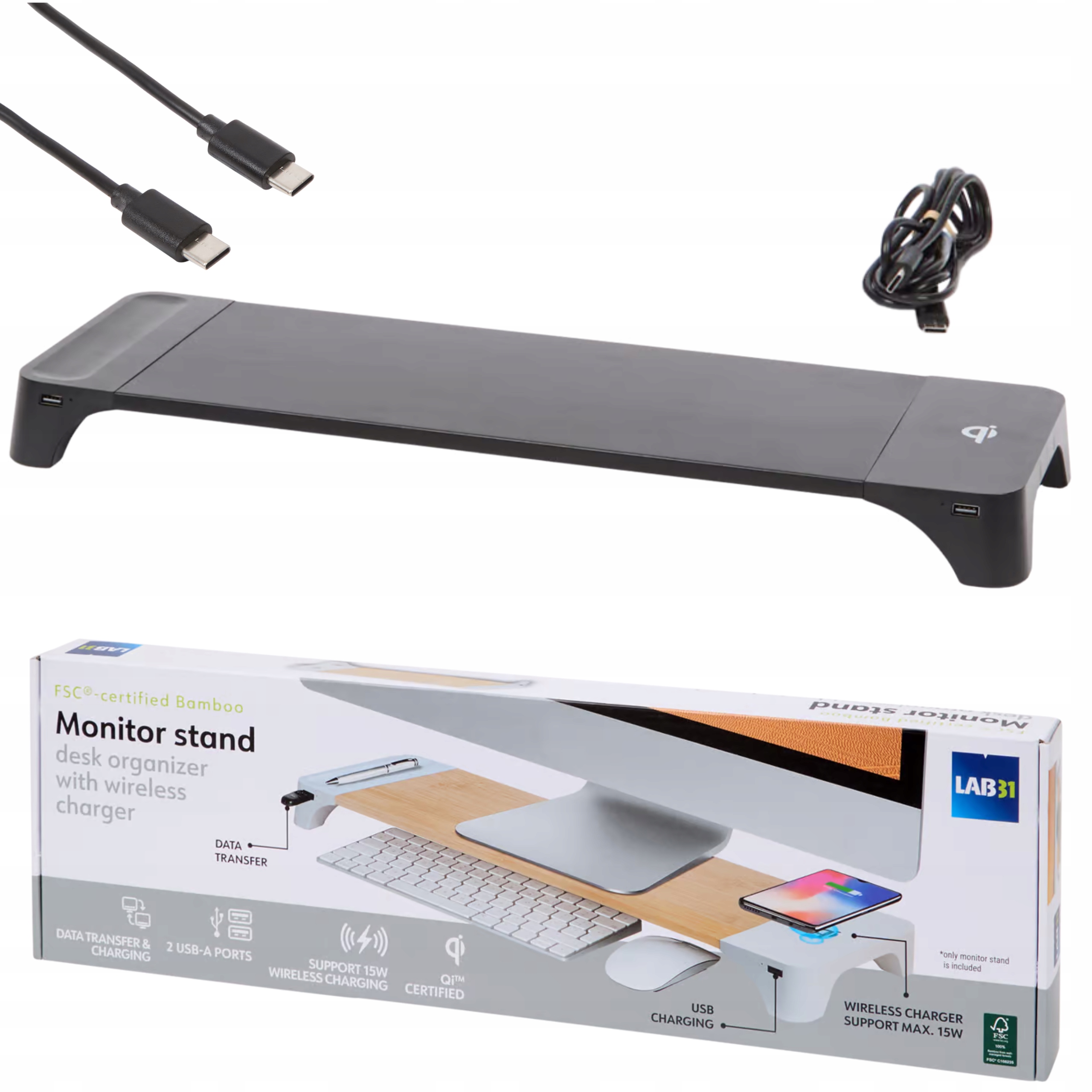 ПІДСТАВКА ПІД МОНІТОР 2x USB НОУТБУК ПОЛИЦЯ ЧОРНА ДЛЯ РОБОЧОГО СТОЛУ ЗАРЯДНИЙ ПРИСТРІЙ
