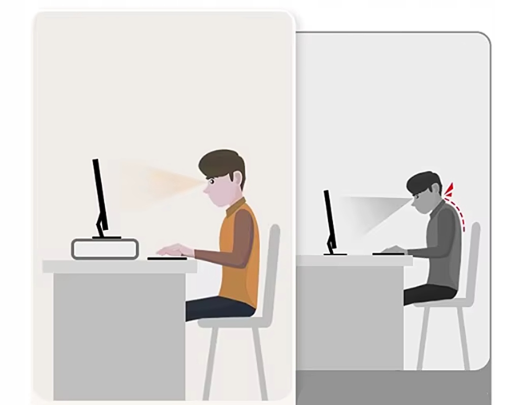 ▶ Ергономічна висота – монітор піднімається на 145 мм, зменшуючи навантаження на шию та покращуючи поставу.