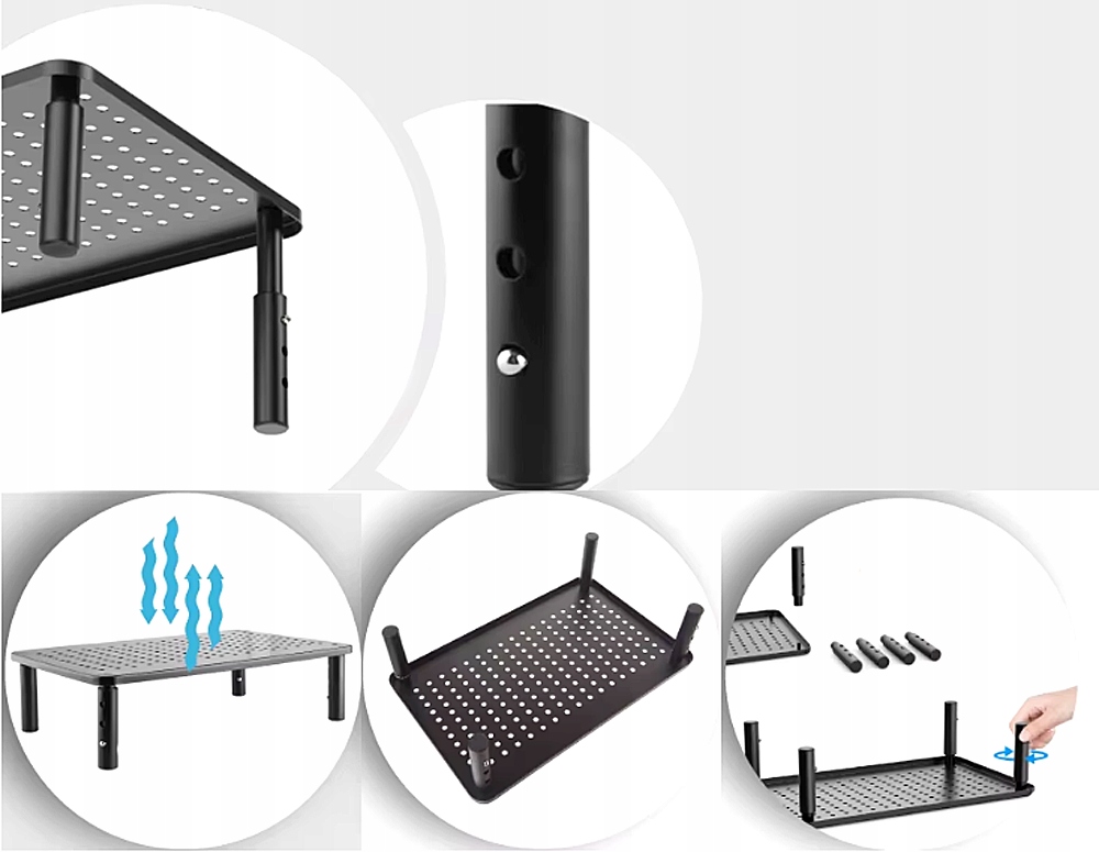 ▶ Вентильований дизайн - Міцна платформа з вентильованими отворами, ця регульована підставка для екрану комп’ютера запобігає перегріванню та зберігає ваш пристрій у прохолоді.