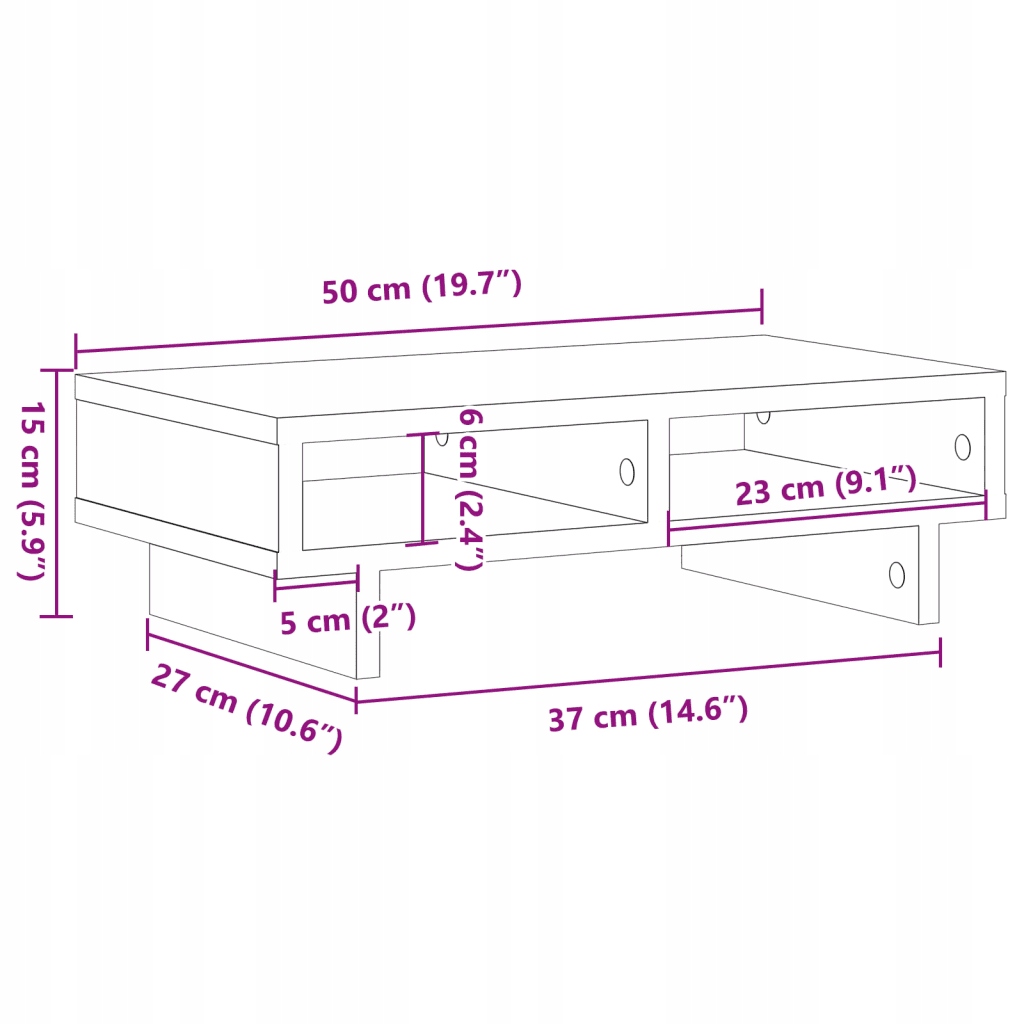 монітор з перегородками, дуб Sonoma, 50x27x15 см