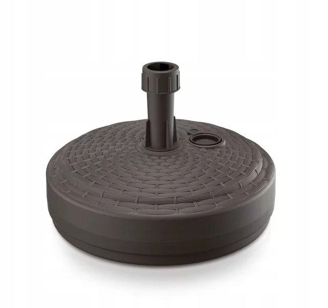 Кругла підставка ідеально підходить для зручного кріплення парасольки від сонця, зовнішня обробка вигляд антрацитового ротанга. Підставку можна наповнити водою або піском, пробка включені. Ємність приблизно 10 літрів, в заповненому стані основа парасольки важить приблизно 10 кг. Підходить для труб діаметром від 10 мм до 26 мм, простий у використанні.