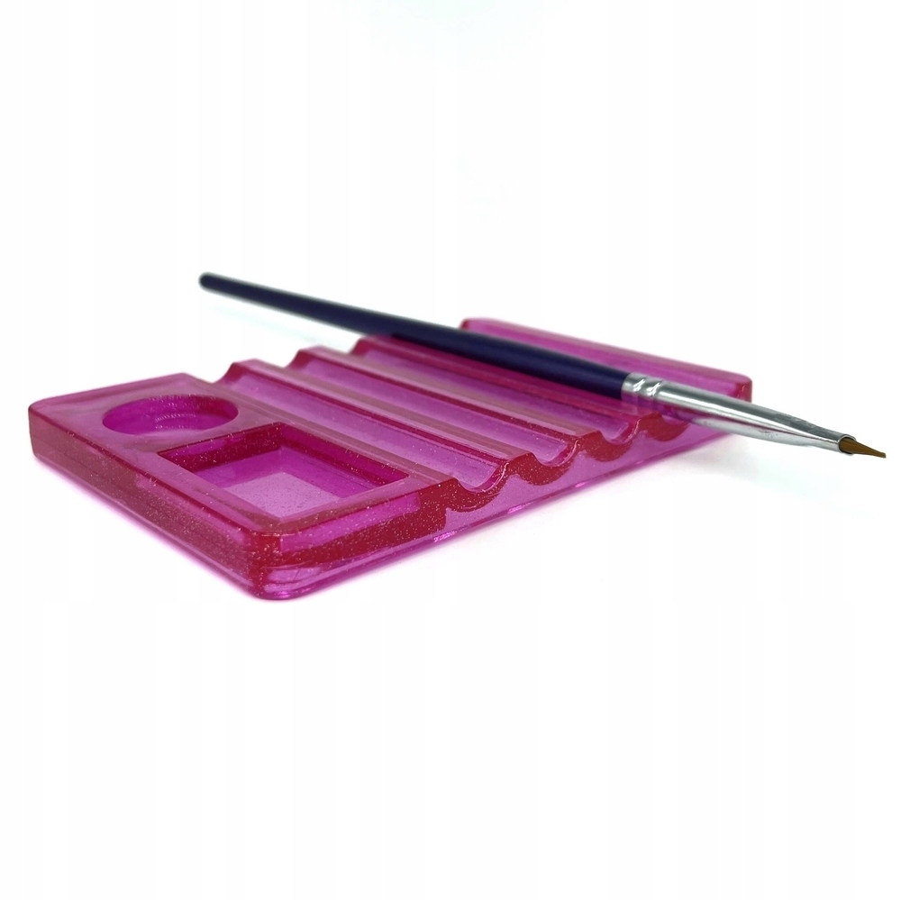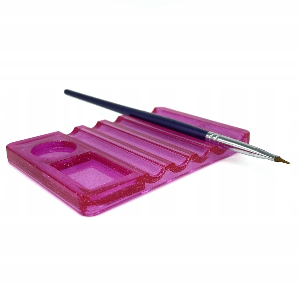 Підставка під пензлик пластикова рожевого кольору з палітрою