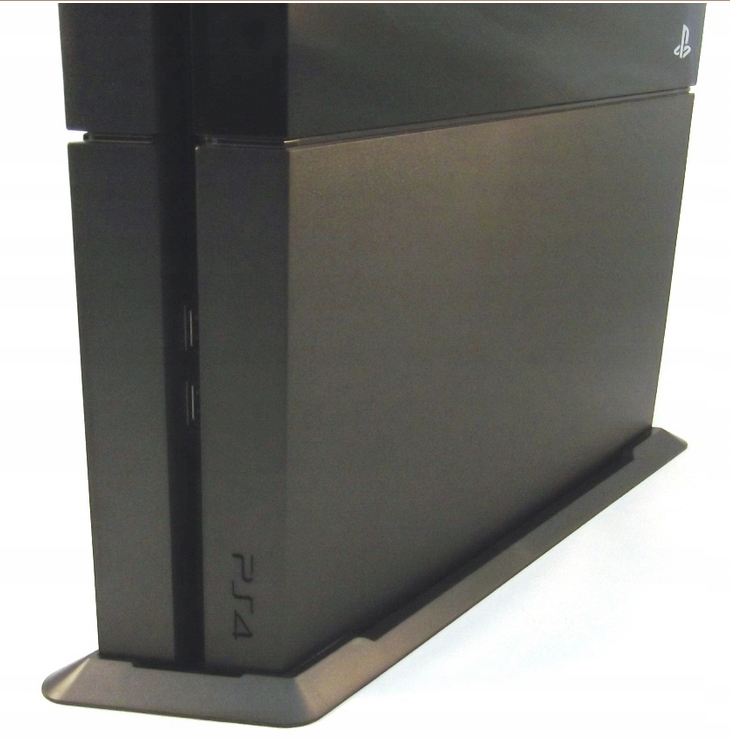 Завдяки вертикальній підставці ви можете легко розмістити PS4 FAT вертикально, щоб він займав менше місця. Міцна неслизька підставка елегантного чорного кольору збільшує базову поверхню консолі, тому вона стоїть абсолютно надійно. Підставка стилістично підібрана до консолі FAT PS4, створюючи єдине ціле. Варто додати, що консоль, яка стоїть вертикально, краще охолоджується, що продовжує термін її служби.