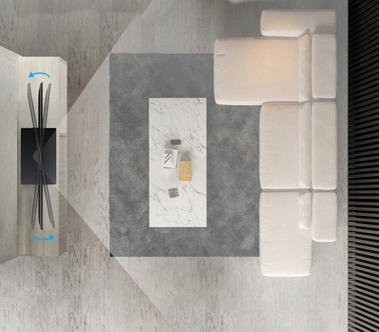 Телевізійну підставку Auronic можна обертати, тож у вас завжди буде ідеальний кут огляду. Підставку під телевізор можна плавно повертати на 60°: 30° вліво і 30° вправо. Тож насолоджуйтесь оптимальним враженням від улюбленого фільму чи шоу з кожного куточка вашого дому.