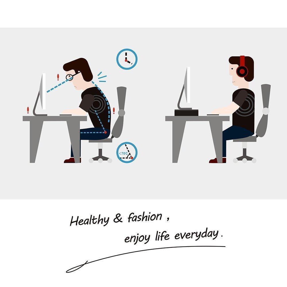 Відповідна висота монітора комп’ютера значно зменшує втому та біль у шиї та спині користувача комп’ютера, що виникає через напругу м’язів під час тривалої офісної роботи.