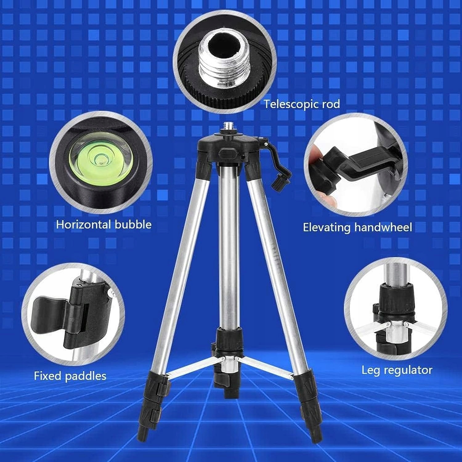 Самовирівнювальний штатив, легкий, виготовлений з алюмінієвого сплаву. Штатив із вбудованим ватерпасом і сумкою для зберігання